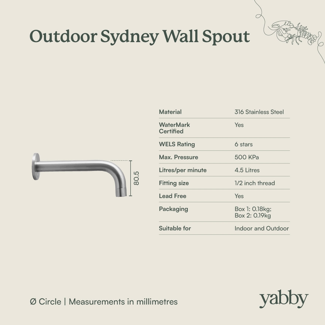 The Outdoor Sydney Wall Spout in Stainless Steel offers a simple, streamlined water outlet for outdoor spaces. Made from durable 316 stainless steel, it’s designed to handle outdoor conditions while maintaining a clean, modern look.