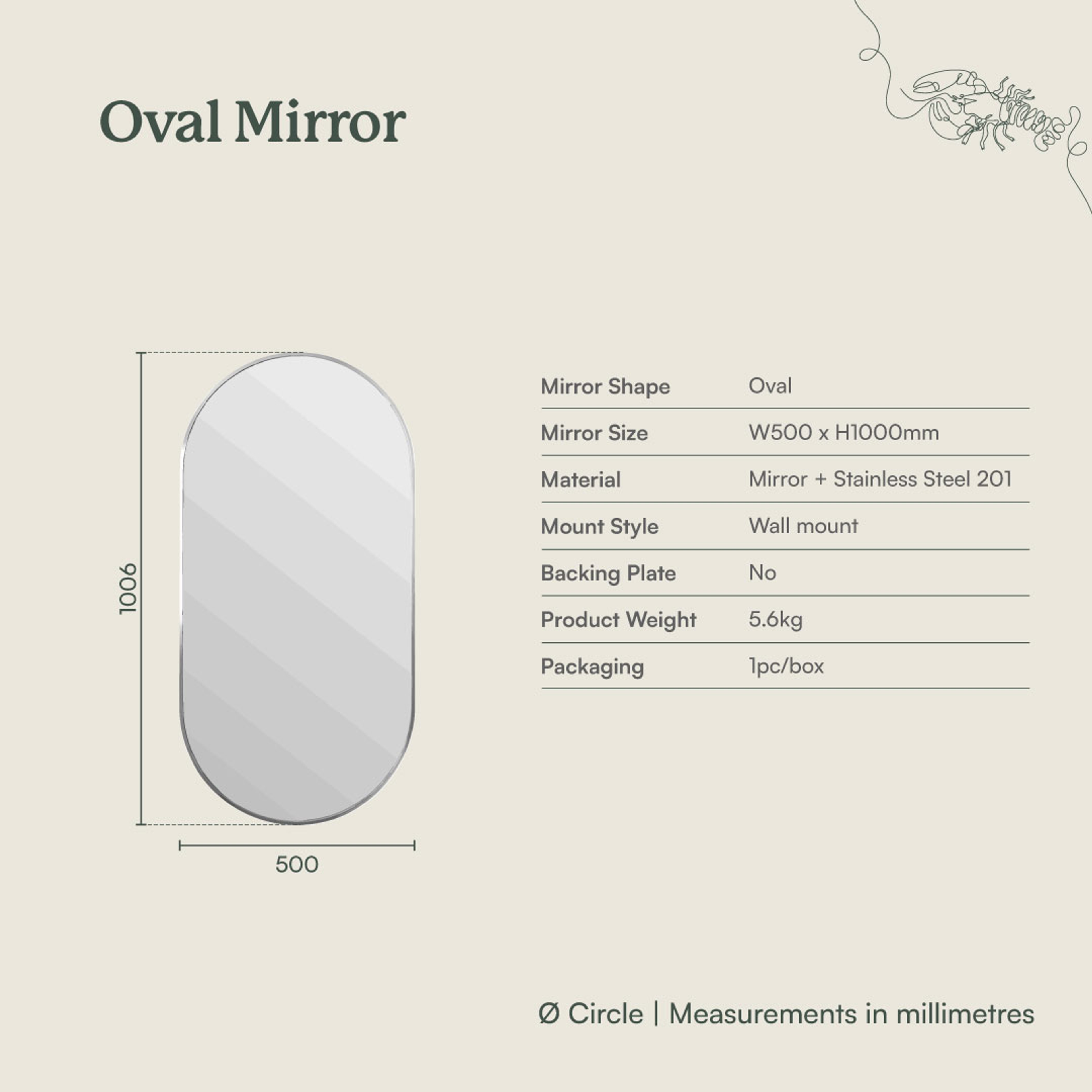 | Mirror Size | 500W x 1000H |