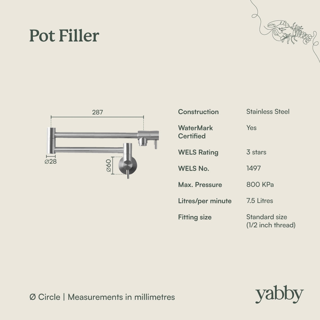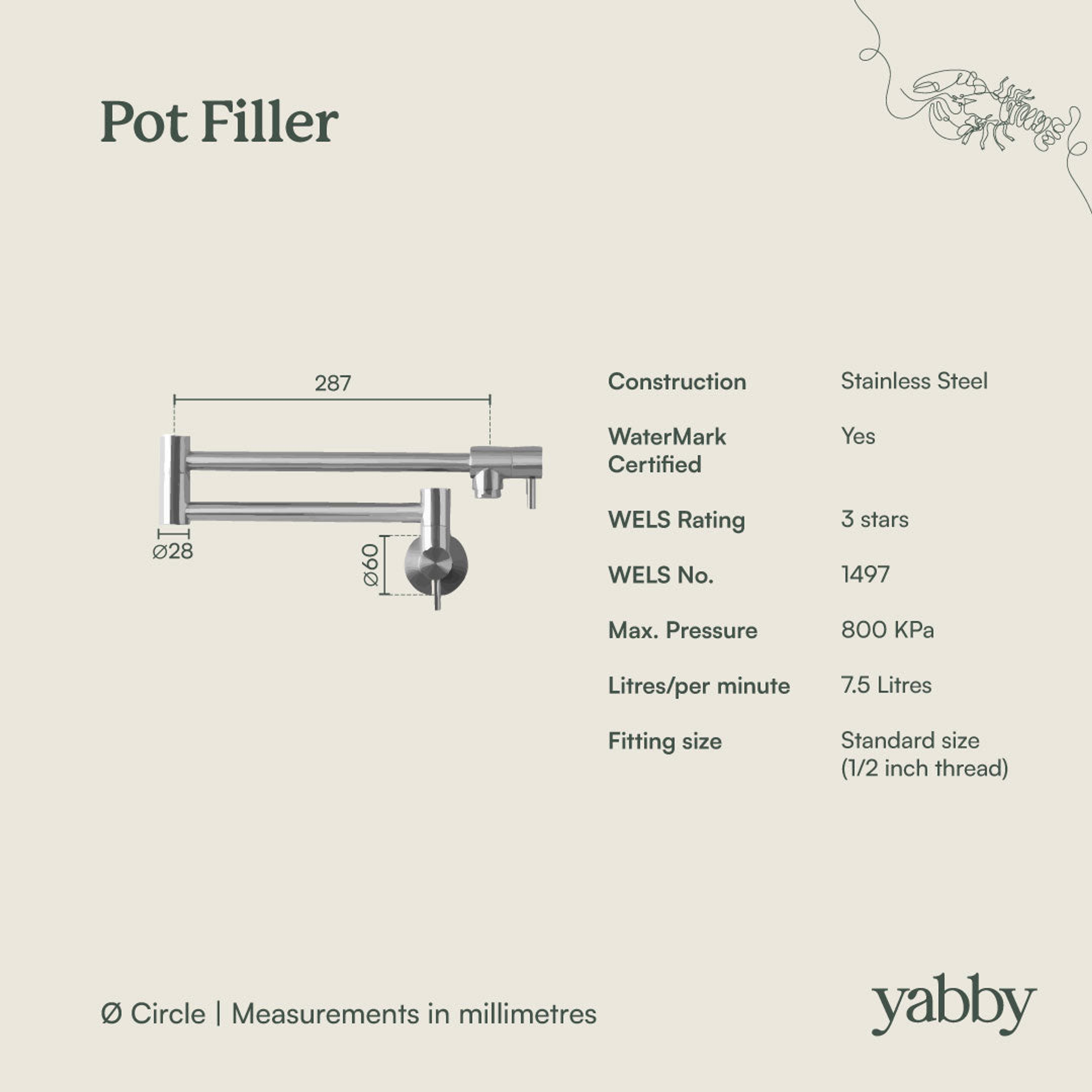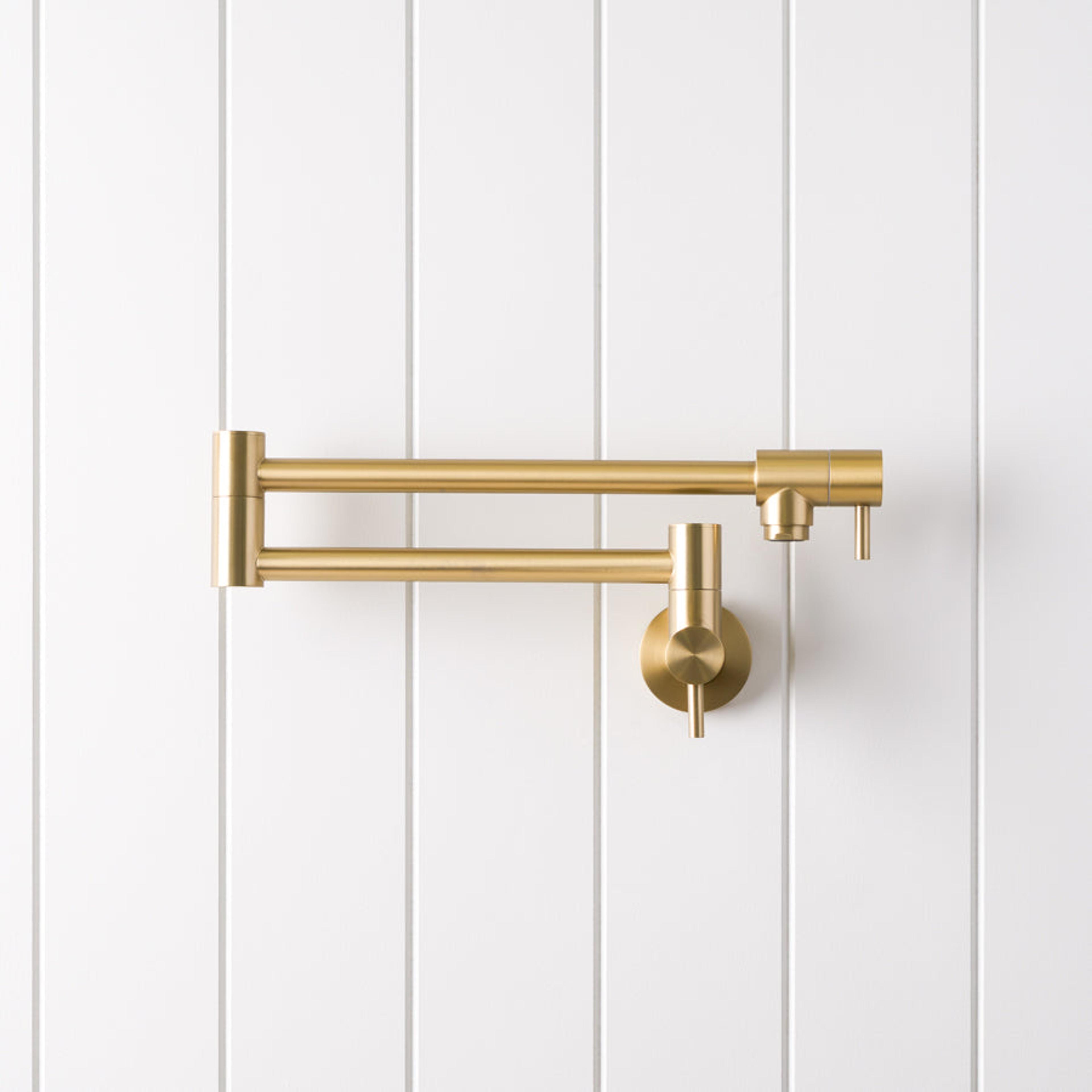 The Pot Filler in Brushed Brass suits home cooks who want warmth and practicality in the kitchen. Installed above the cooktop, this brushed brass kitchen pot filler saves your back by filling large pots in place. Great for large family homes with high use kitchens.