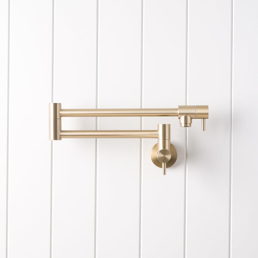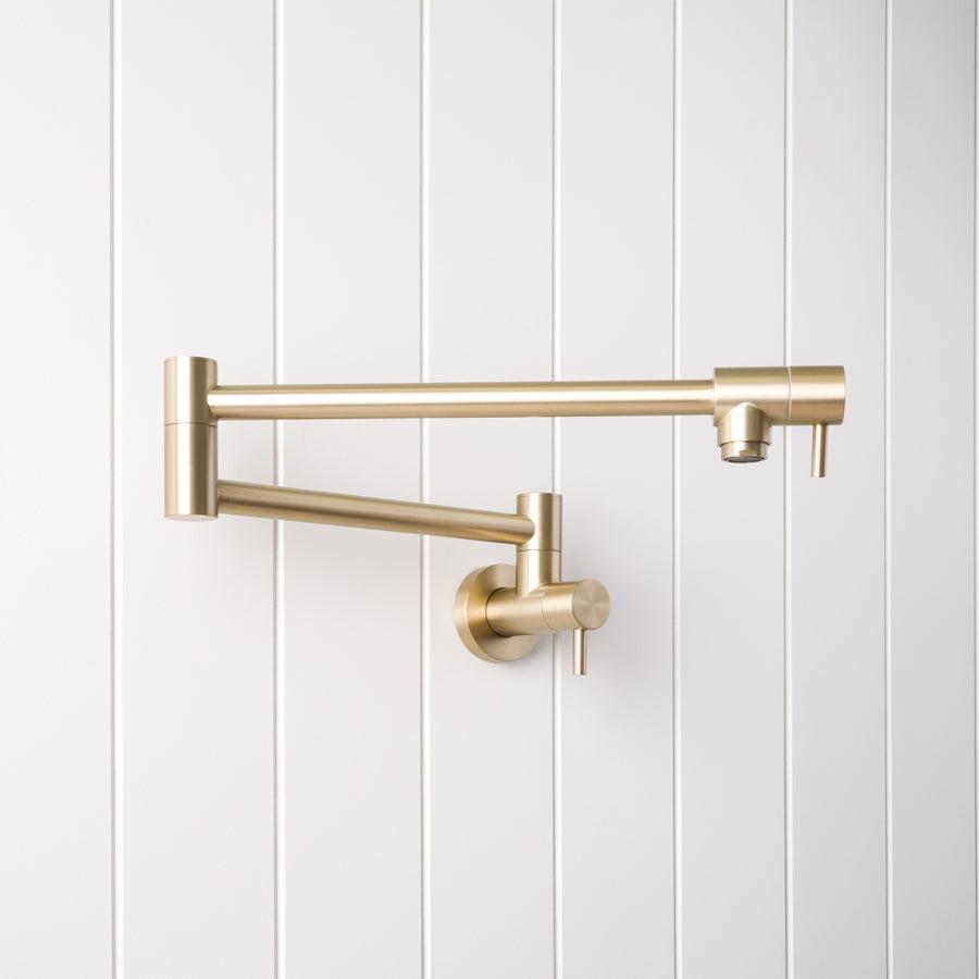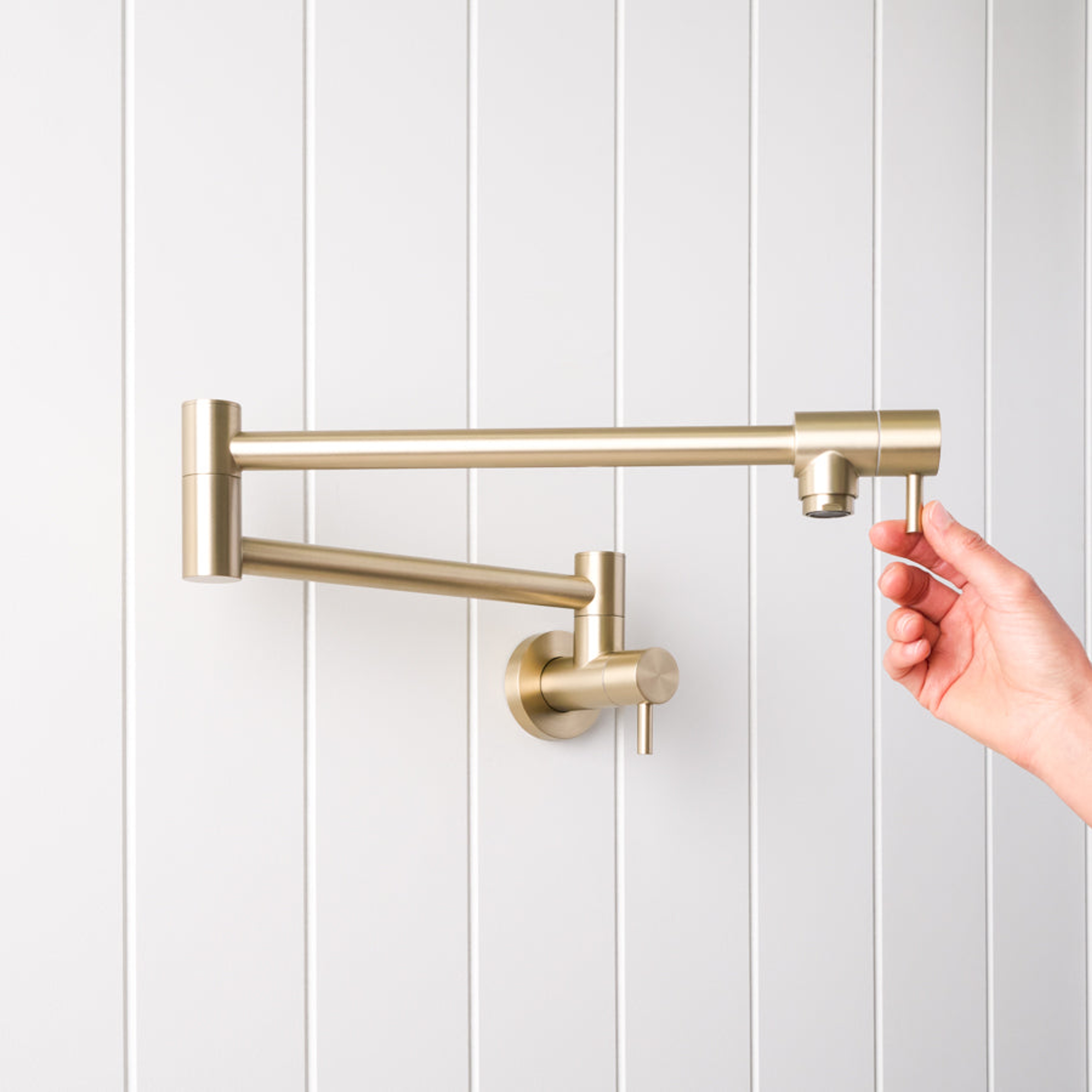 The Pot Filler in Warm Brushed Nickel is a good match for mixed finishes and family-friendly spaces. This warm brushed nickel pot filler sits by the cooktop, so you can fill stockpots and saucepans without juggling the sink. A tapware piece that makes home cooking easier.