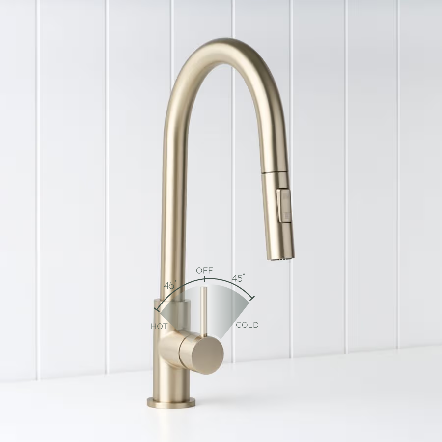 The Sydney Pullout Kitchen Mixer in Warm Brushed Nickel is perfect if you want flexibility at the sink without a bold metal colour. The dual function spray head makes rinsing, soaking and cleaning more efficient, while the pull out hose handles deep pans and trays. Its warm brushed finish hides marks and suits everyday family kitchens.