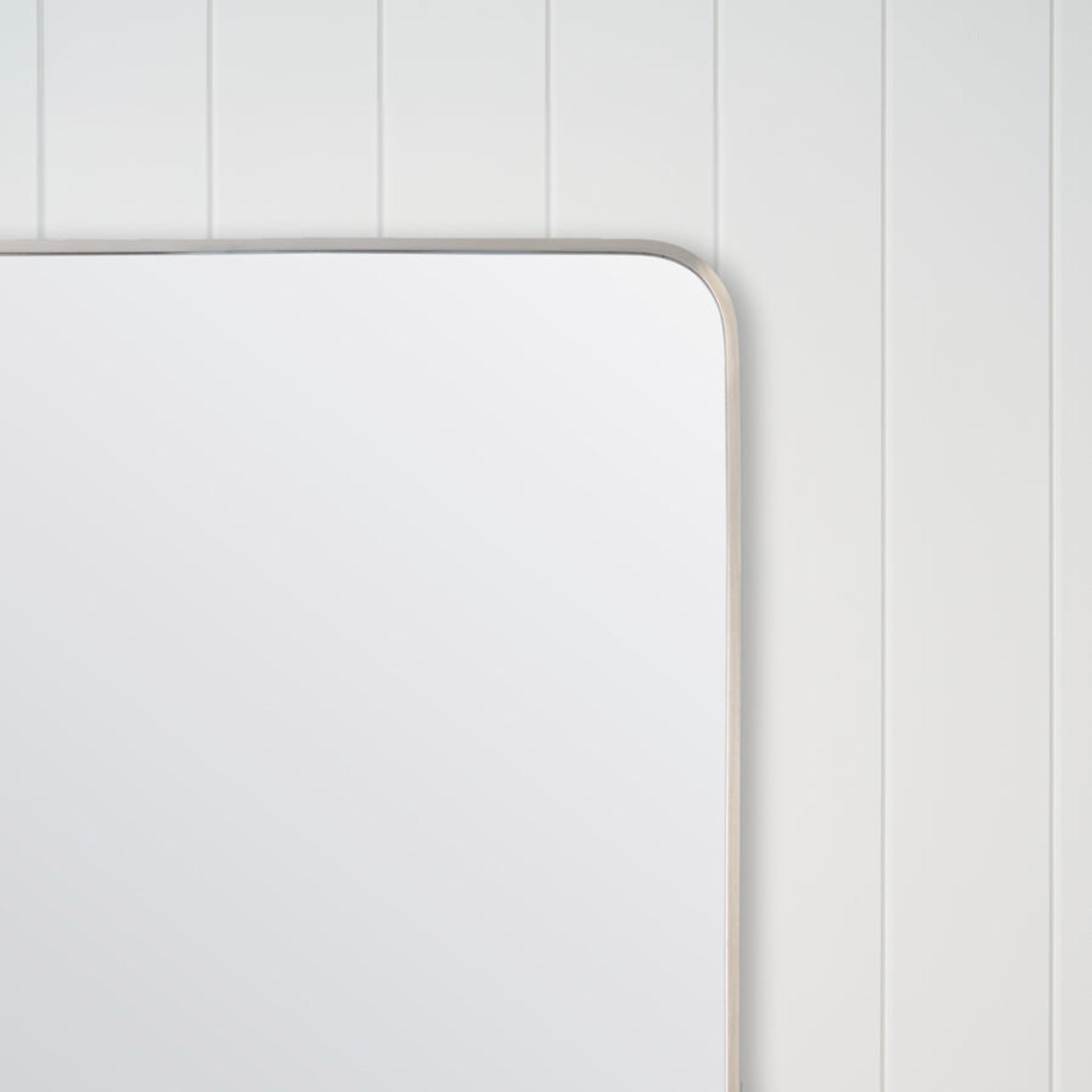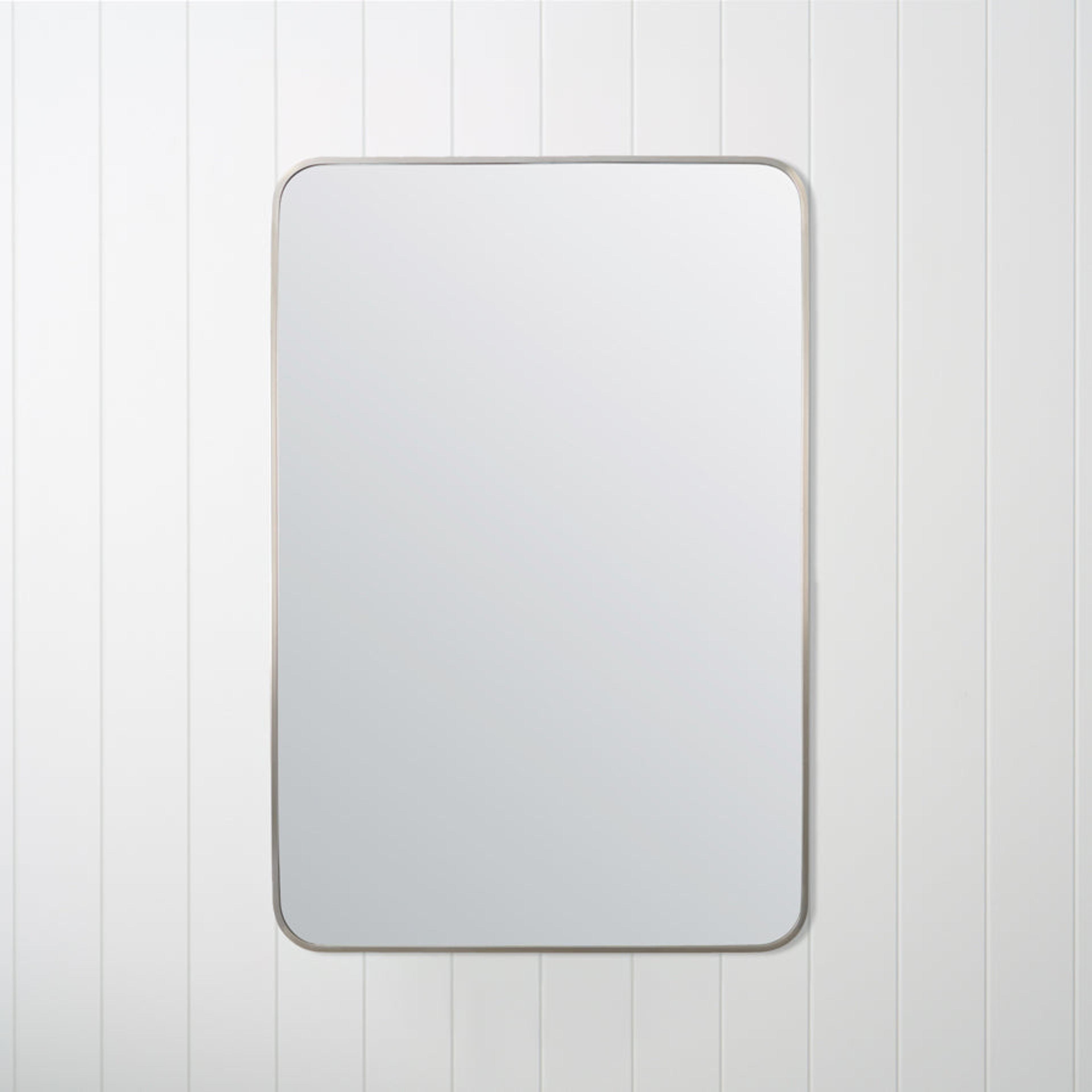 The Rectangular Mirror in Warm Brushed Nickel is a practical bathroom mirror with a low-sheen metal frame that hides small marks. Supplied with wall mount brackets, it installs easily above the vanity. A good choice if you want your mirror to tie in with brushed nickel taps and accessories.