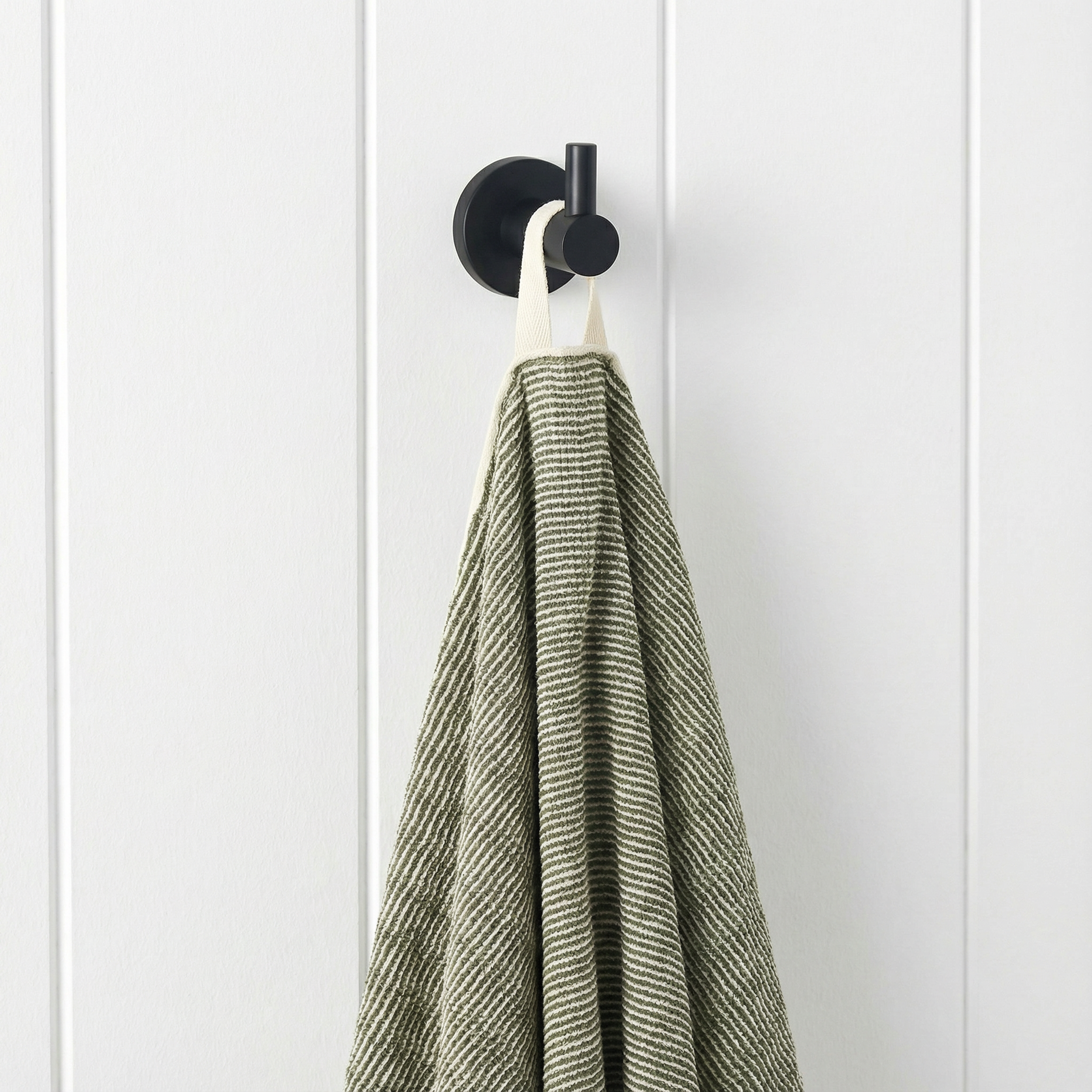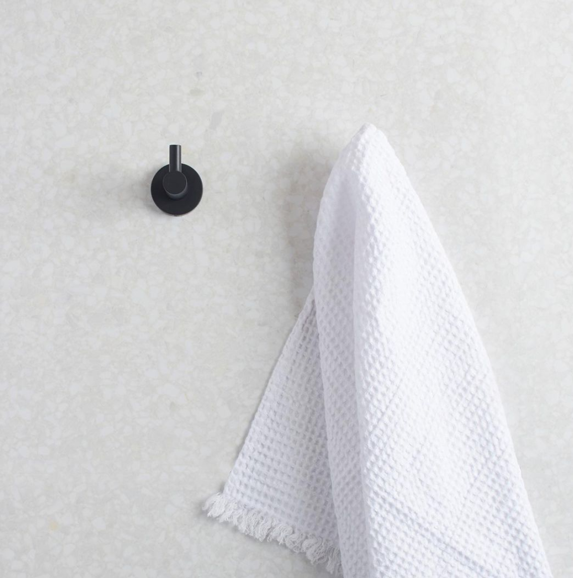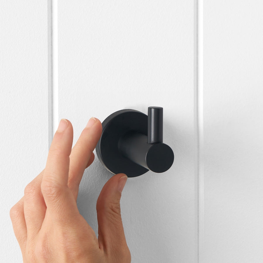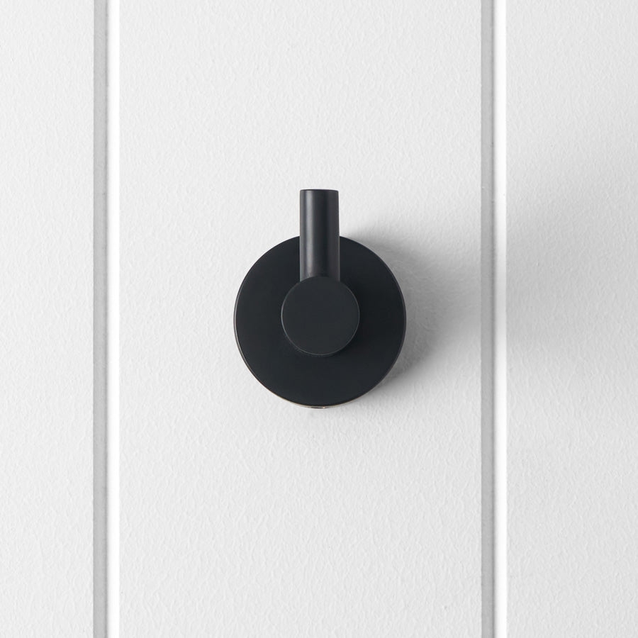 The Robe Hook in Matte Black is a practical wall hook that works hard in everyday bathrooms. The matte finish helps disguise small scuffs, and the simple form holds heavy towels without slipping. Ideal beside the shower or behind the door in homes with black fixtures.