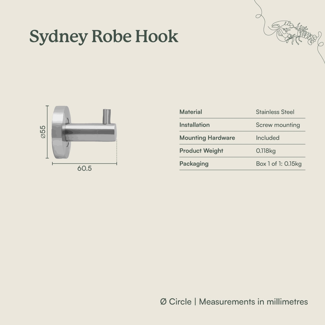 The Sydney Robe Hook in Warm Brushed Nickel is ideal if you want a bathroom robe hook that suits both cool and warm colour schemes. Stainless steel makes it strong and easy to clean, and the warm brushed finish is forgiving on marks. It helps keep everyday towels organised and off the floor.