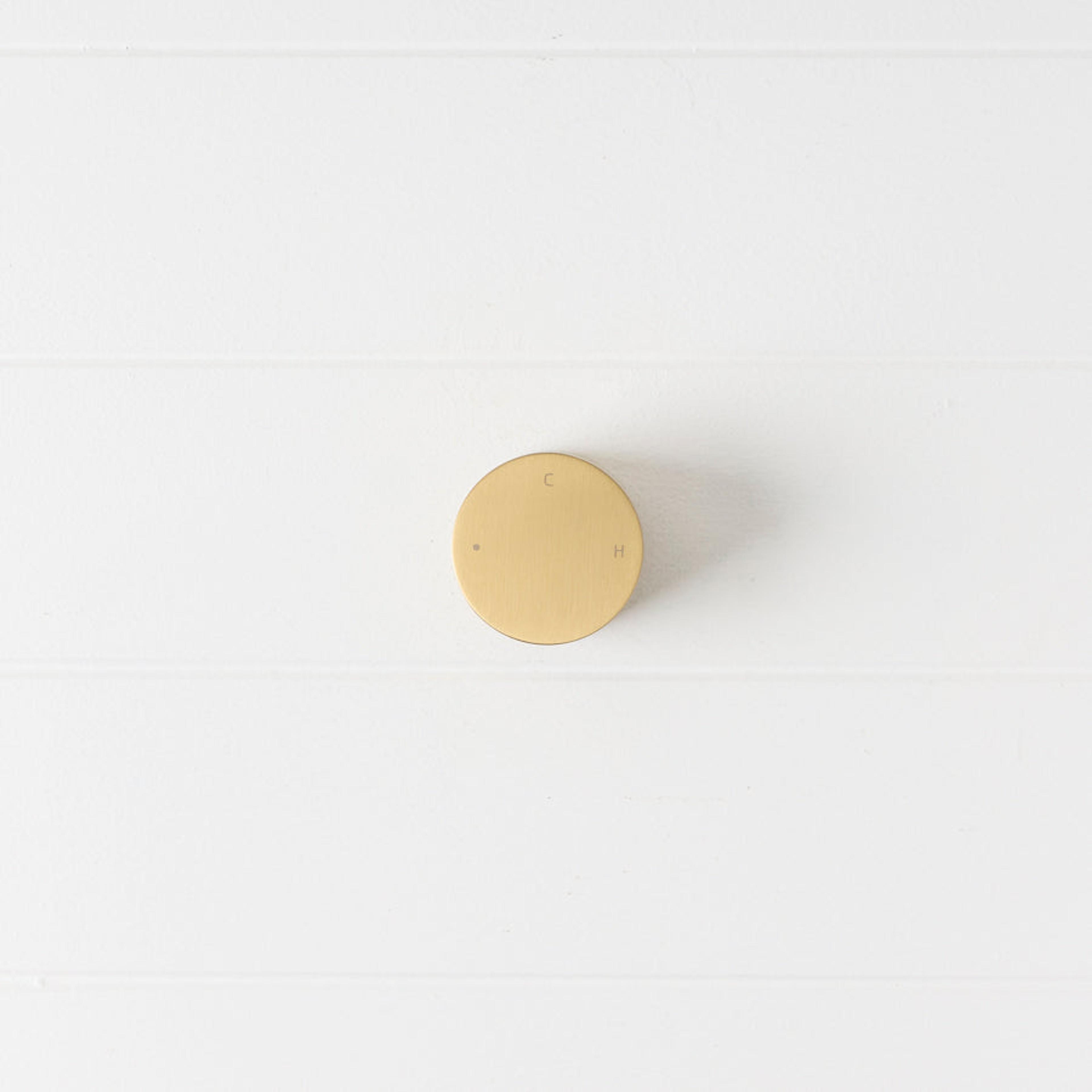 The Round Benchtop Progressive Mixer in Brushed Brass keeps the basin area tidy and simple to use. Start with a light, cool stream and turn the dial for more pressure and warmth in one motion. It’s clear, precise and easy to get just the right temperature.