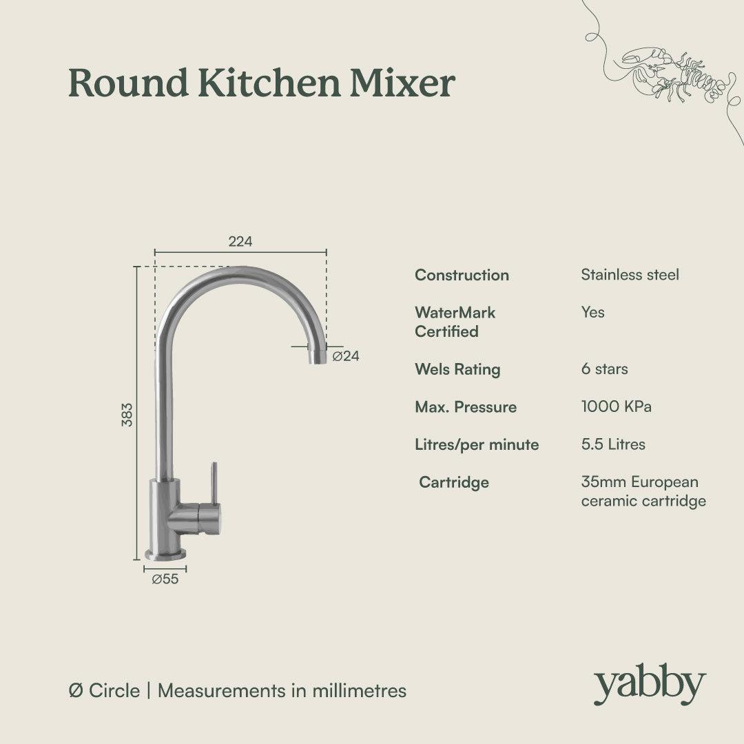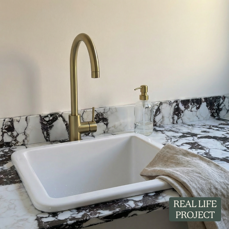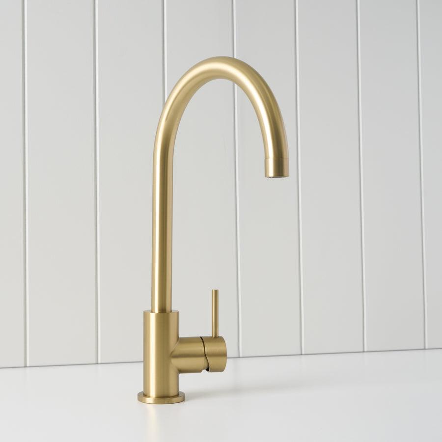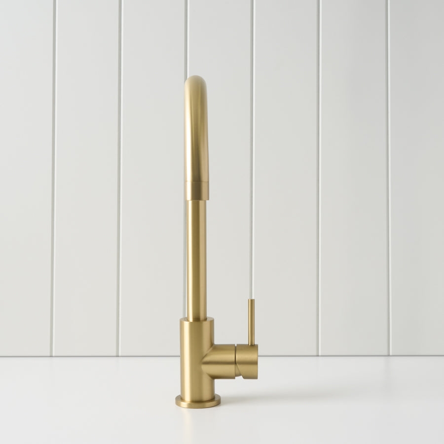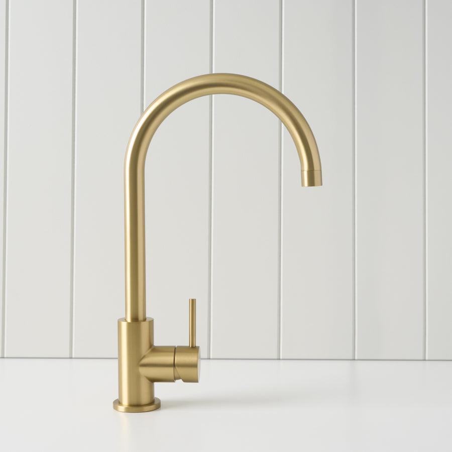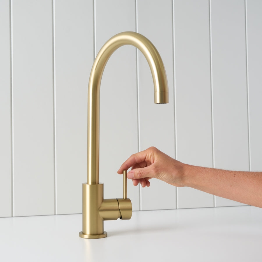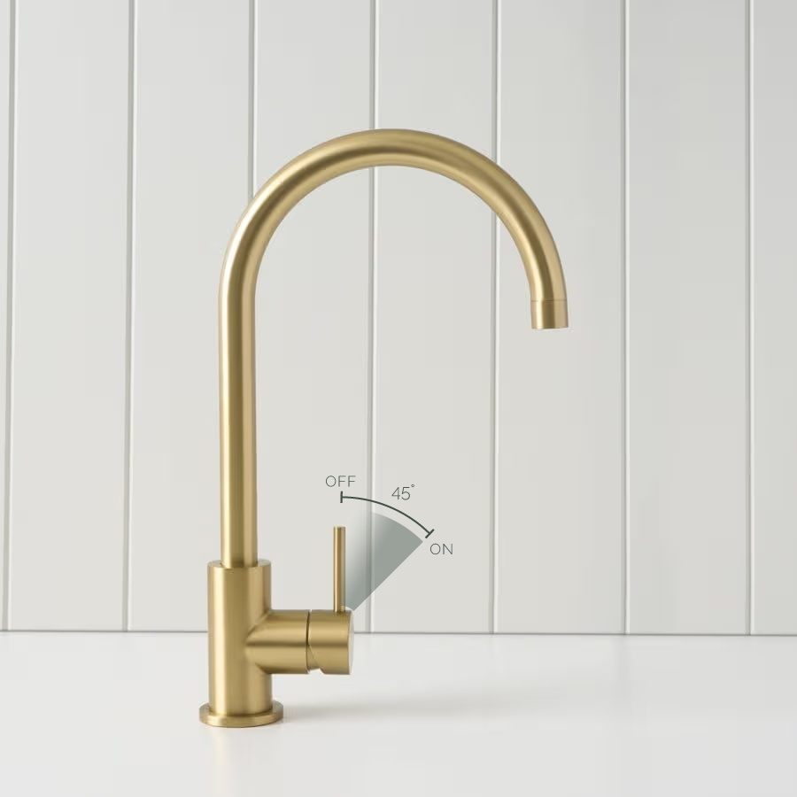 The Sydney Round Kitchen Mixer in Brushed Brass is ideal if you want a dependable round kitchen tap that still feels considered. The brushed finish helps disguise fingerprints and water spots, and the tall spout gives better reach around the sink. It is a simple upgrade that improves both function and look.