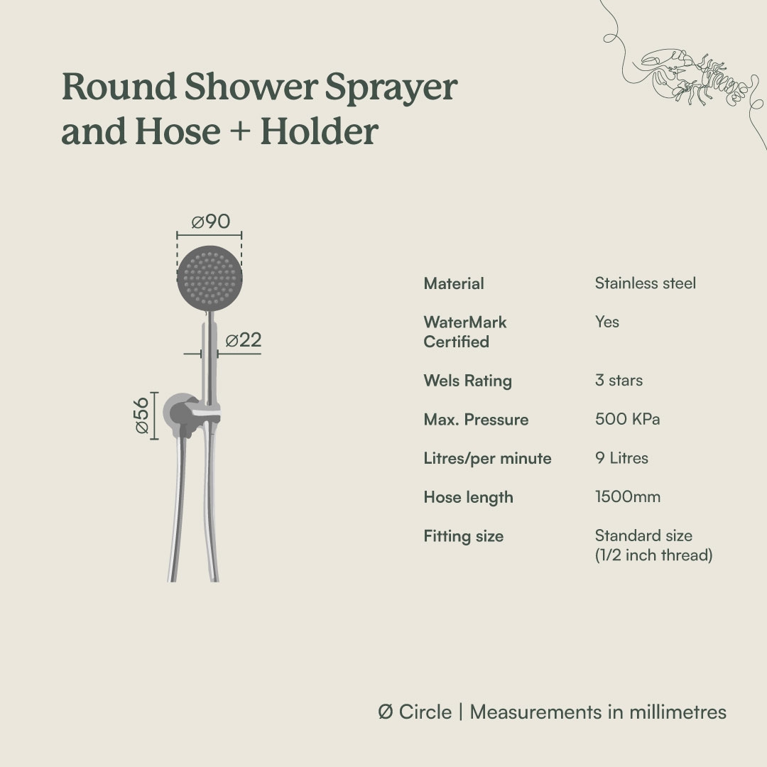 Upgrade your daily routine with the Round Shower Hose + Sprayer, a versatile handheld shower designed for comfort, convenience, and style. Featuring a sleek round head and a sturdy wall-mounted bracket, this sprayer lets you adjust the angle with ease for the perfect hands-free experience.