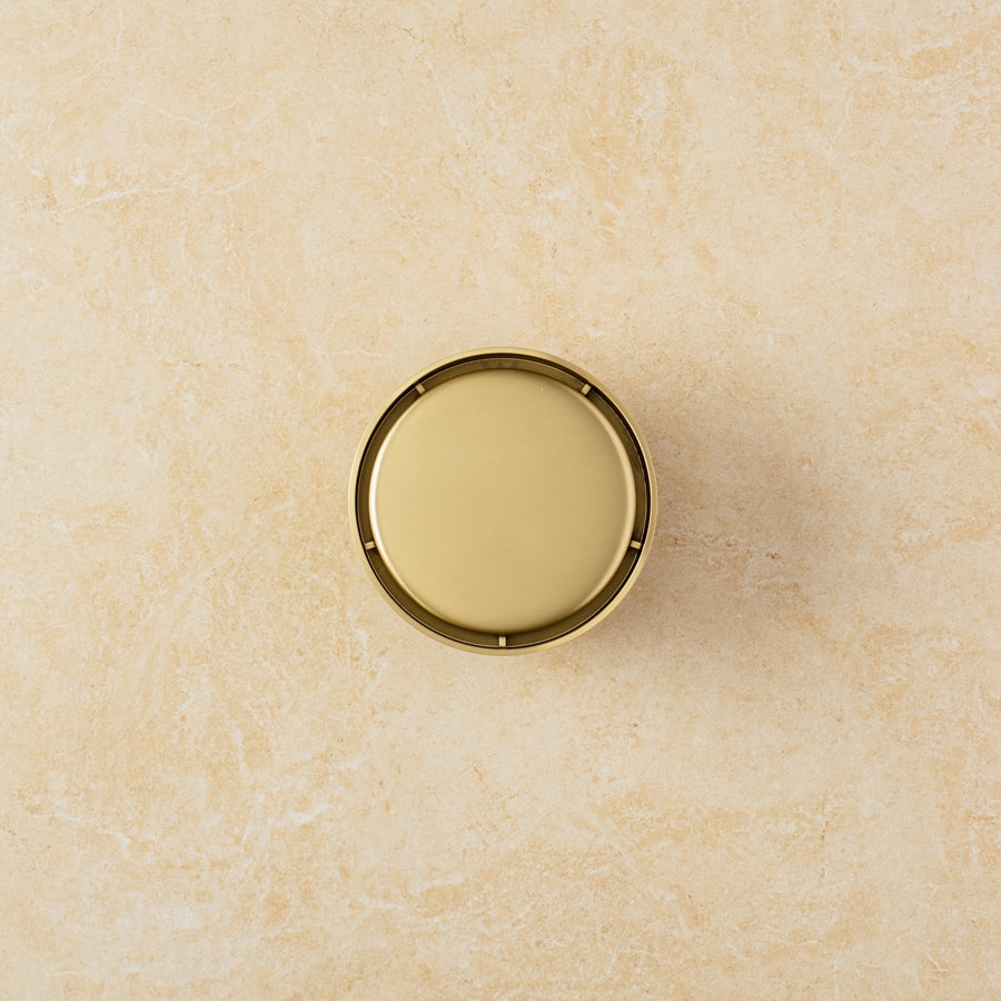 The Round Tile Insert Floor Waste in Brushed Brass is a practical tile-in waste for showers and laundries. The centre section is tiled, so you see more floor and less grate, while water still drains quickly. The brushed brass rim ties in with brass tapware without dominating the room.