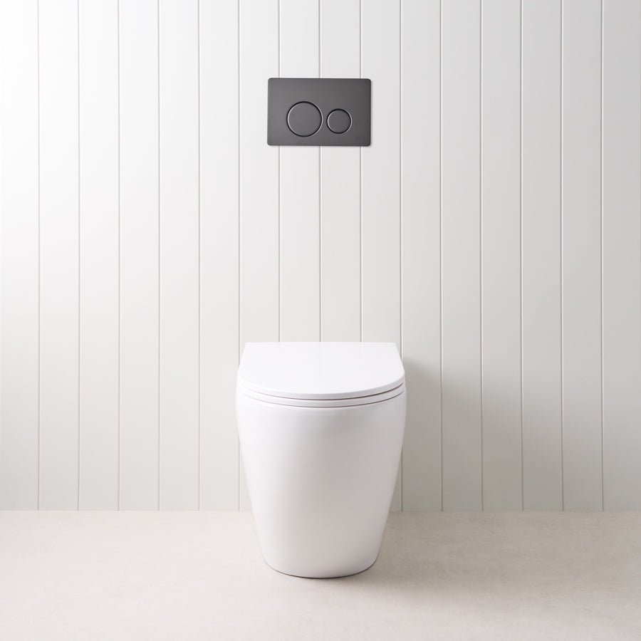 Curved In-Wall Toilet With Round Matte Black Buttons