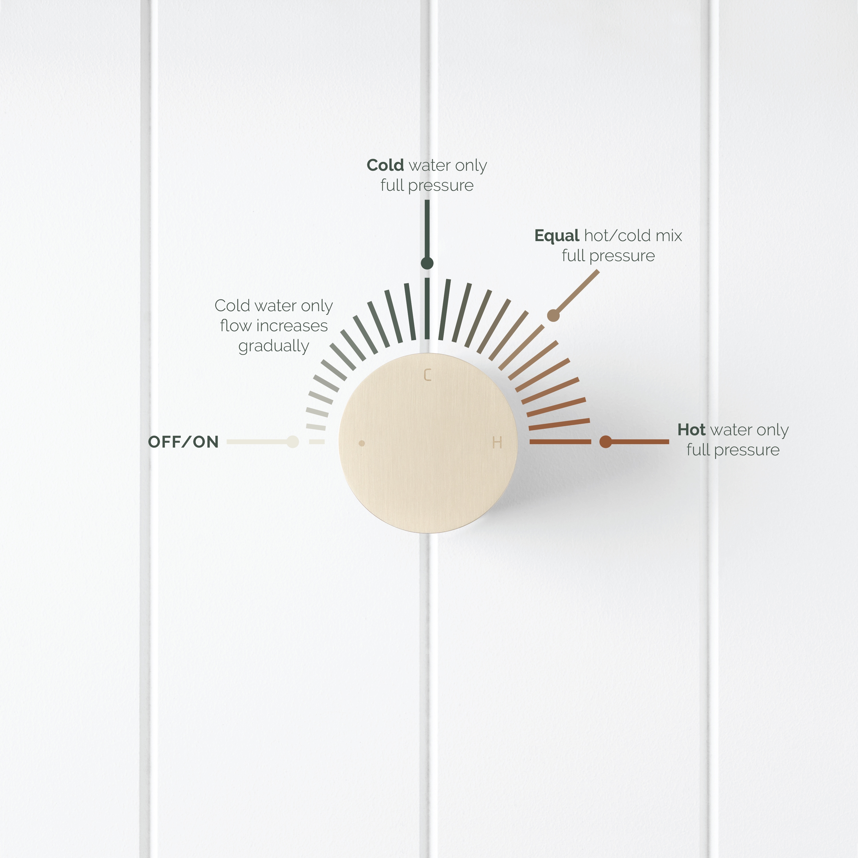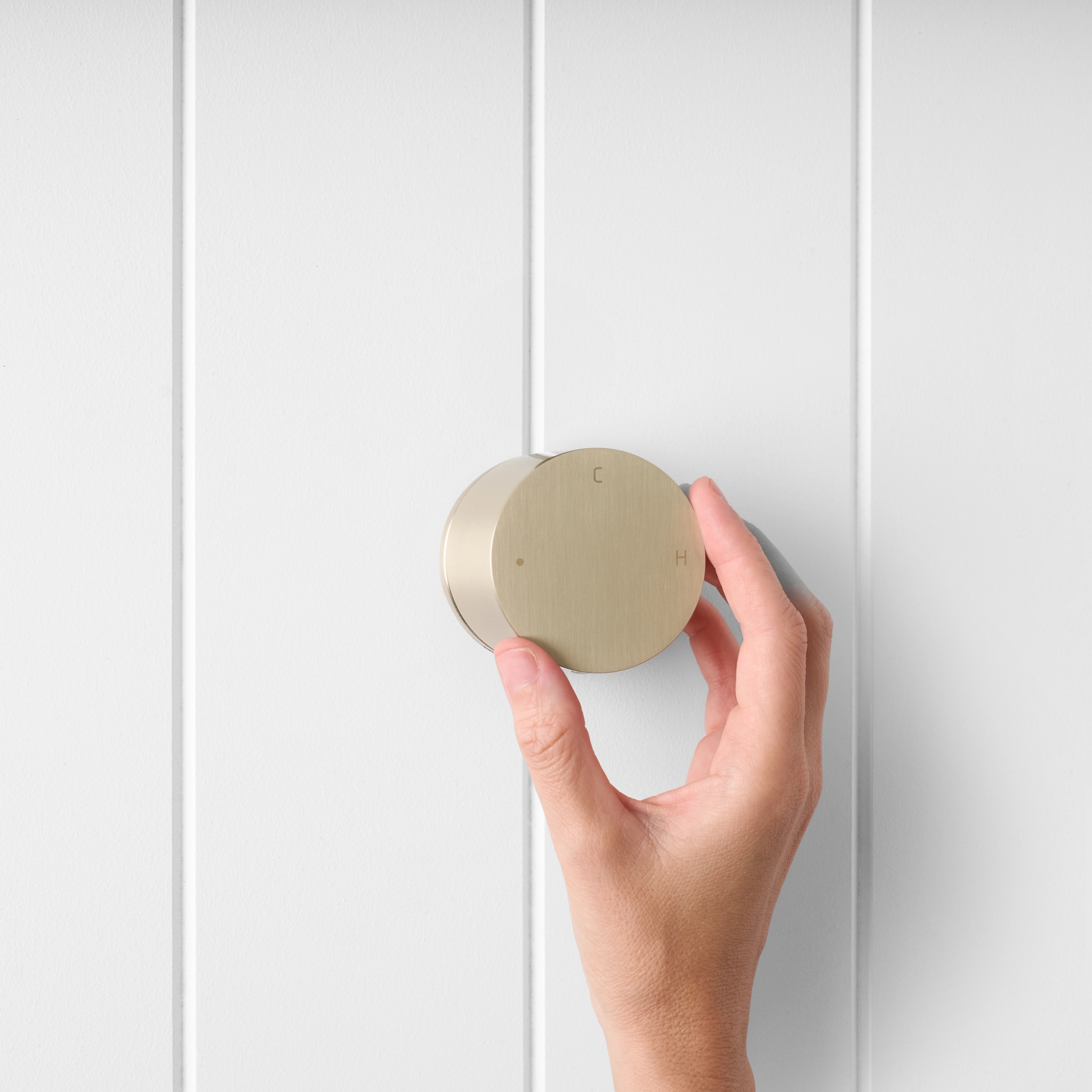 The Round Wall Progressive Mixer in Warm Brushed Nickel is ideal if you want one simple control that suits any palette. Twist to start a gentle, cool stream, then rotate further for more pressure and warmth. The brushed surface is forgiving on fingerprints in busy bathrooms.