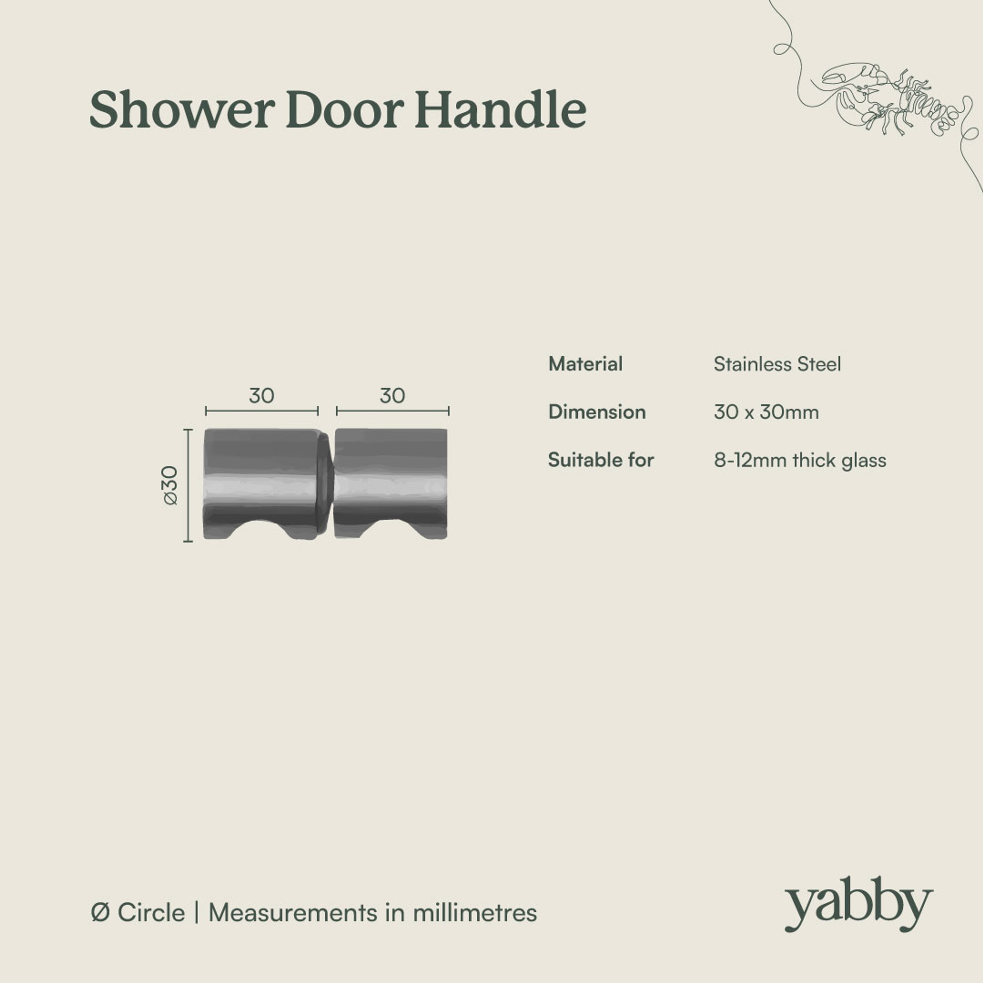 The Shower Door Handle in Brushed Brass is made for everyday use in busy bathrooms. The two sided handle with finger divots is easy to grab, even with wet hands, and the supplied plastic washers help protect your shower screen. It suits glass thicknesses between 8 and 12 mm.