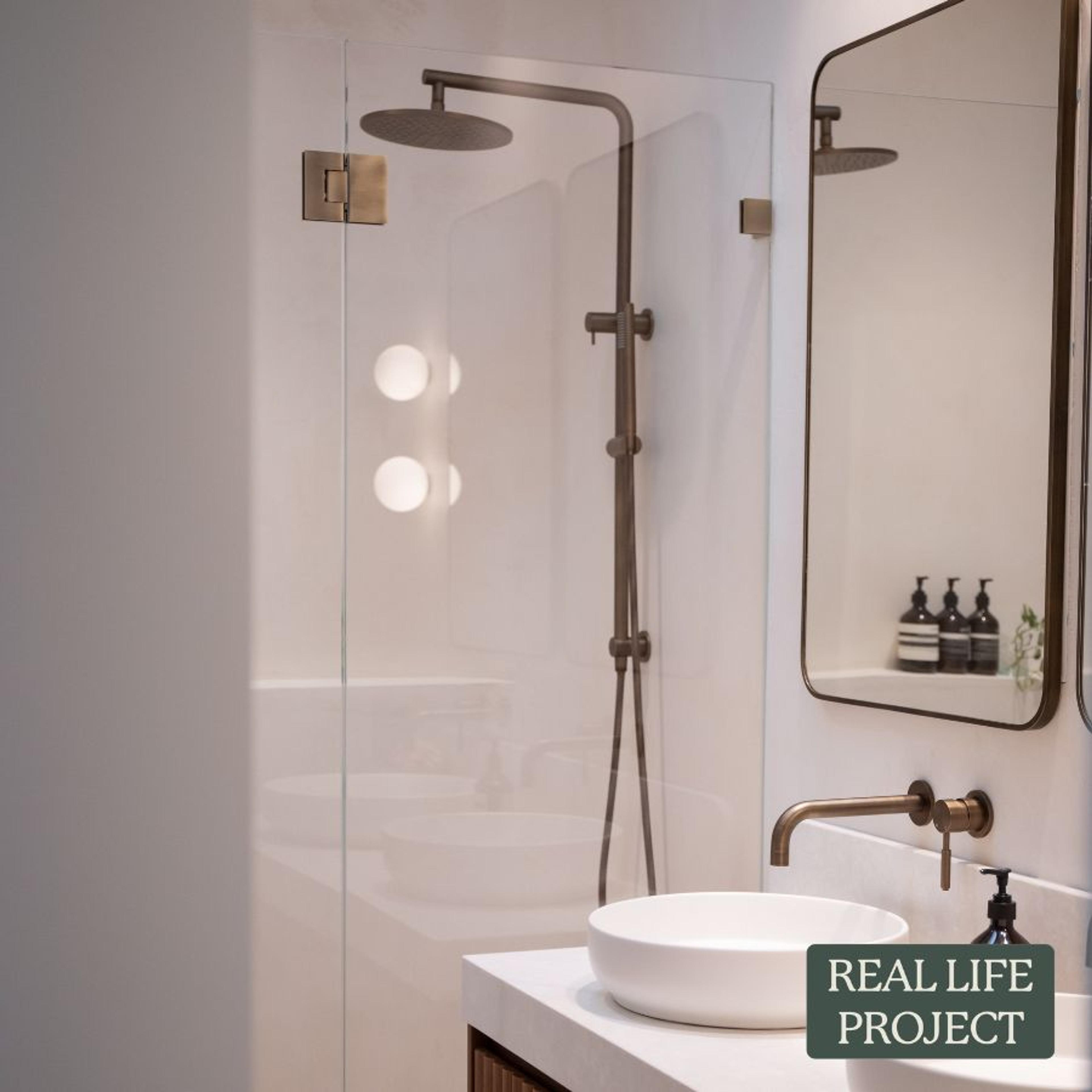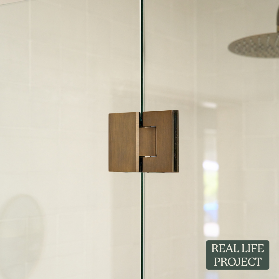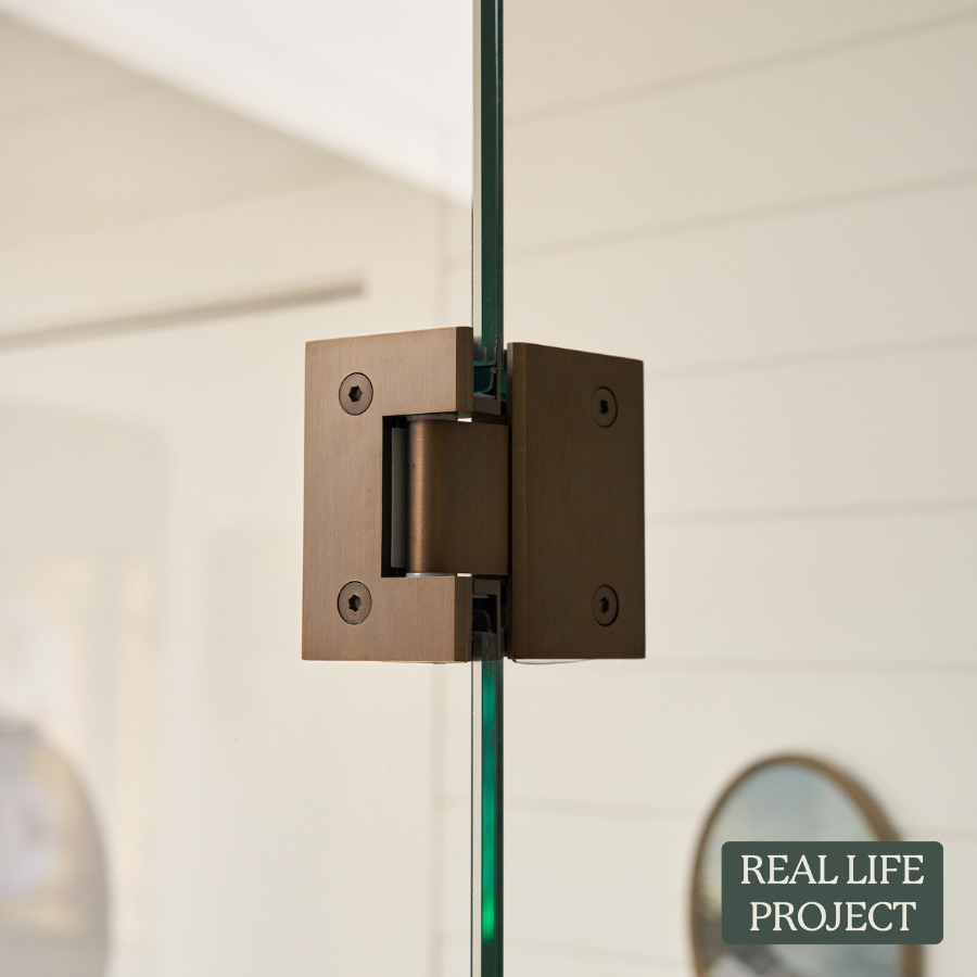 The Glass to Glass Shower Hinge in Antique Brass is a sturdy choice for hinged shower doors. Made from stainless steel, it fits glass between 8 and 12 mm and arrives with all screws and plates included. The simple design keeps the door movement smooth while matching antique brass tapware. Maximum weight per hinge is 30KG.