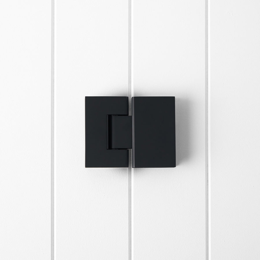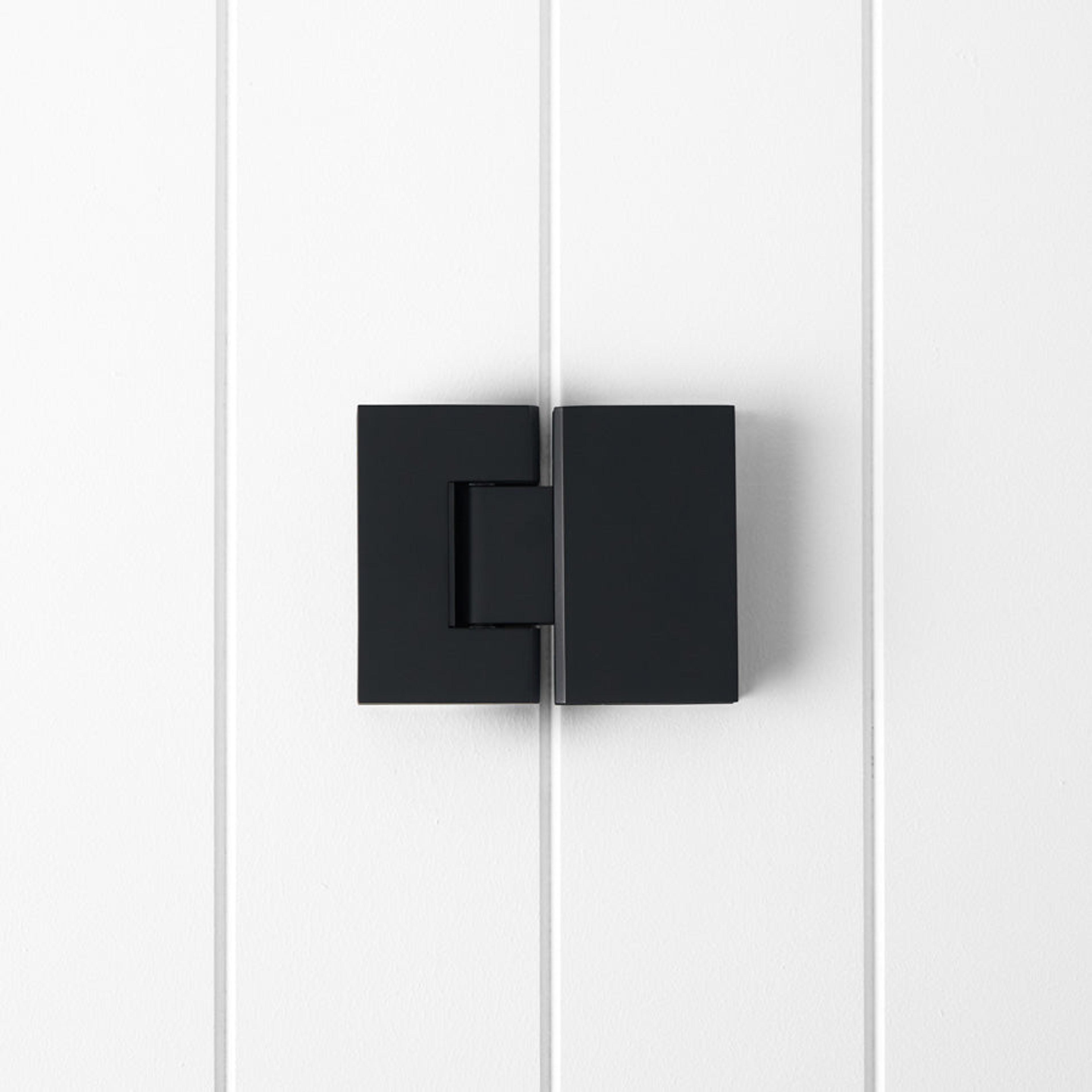 The Glass to Glass Shower Hinge in Matte Black is a smart way to finish a black hardware bathroom. It suits glass from 8 to 12 mm thick and arrives with all required hardware for installation. The matte face plates are simple to wipe down and look neat from inside and out. Maximum weight per hinge is 30KG.