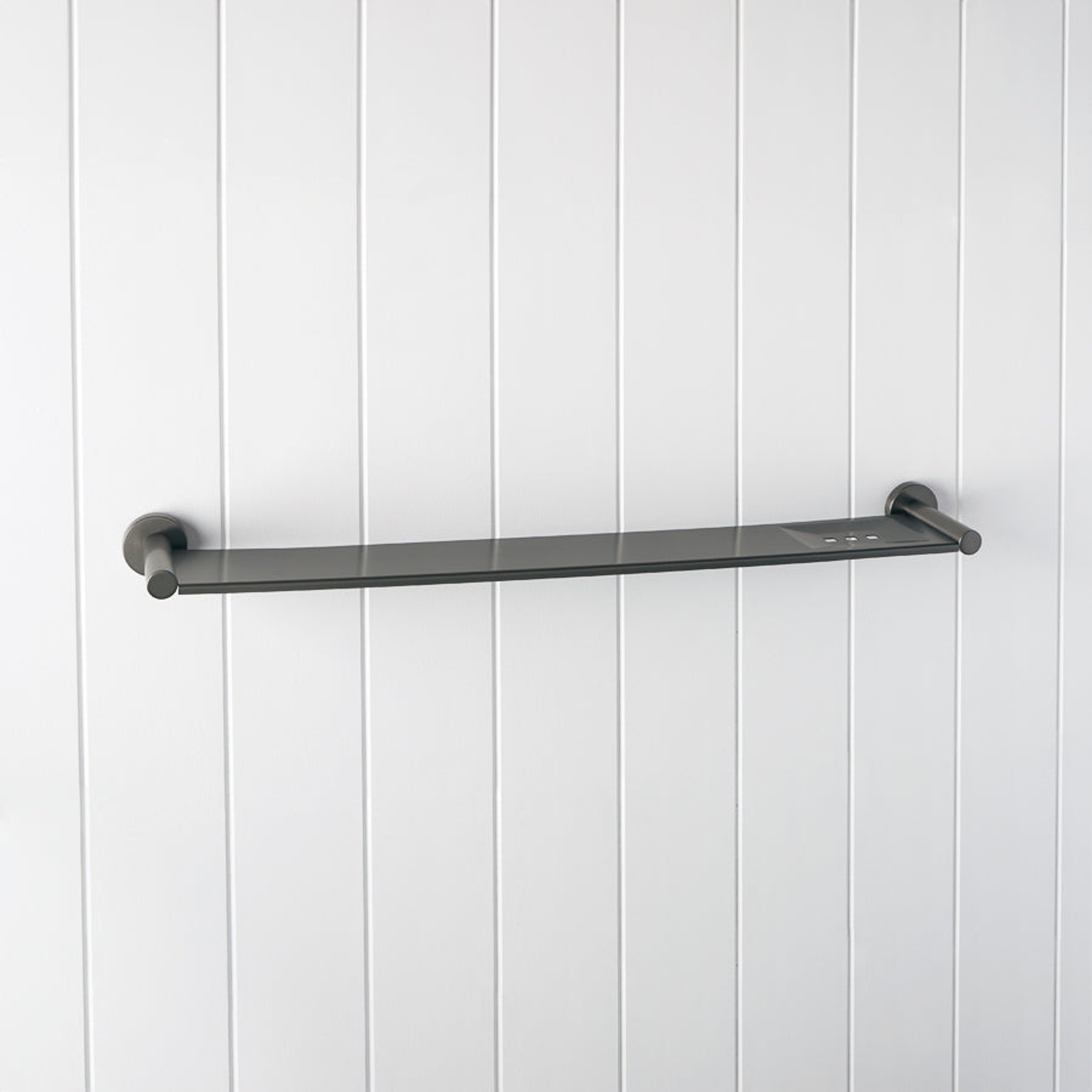 The Shower Shelf in Gunmetal is ideal if you like darker fittings. The long bar style shelf keeps shampoos and conditioners lined up off the tiles, making the base of the shower easier to clean. A durable gunmetal shower shelf that hides marks between wipes.