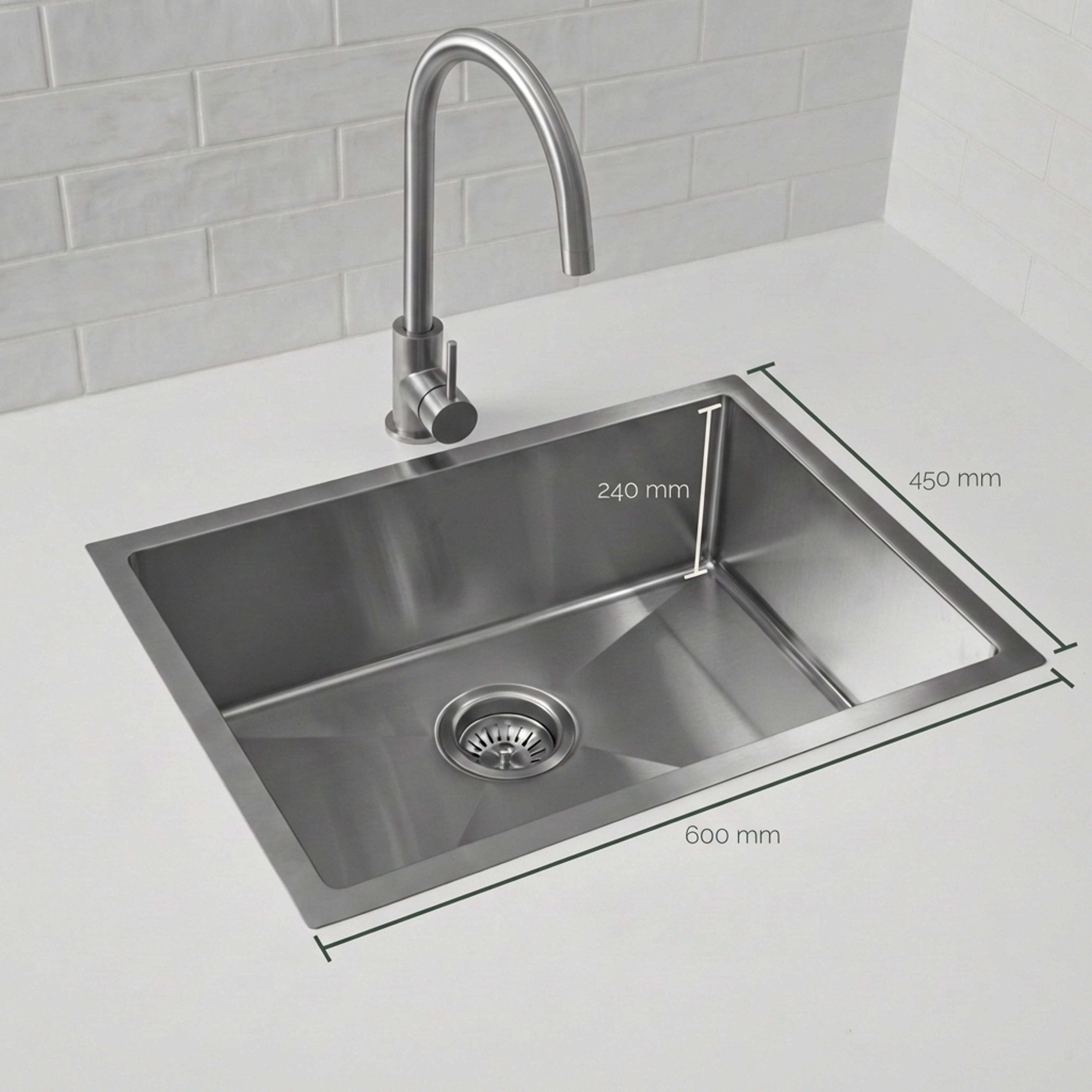 The Single Bowl Deep Sink 550x450mm Stainless Steel is a practical choice for busy family kitchens. The deep bowl keeps water and dishes contained, and the handmade stainless steel construction is tough enough for daily use. With a simple rectangle shape, this kitchen sink is easy to clean and works with most bench top layouts.