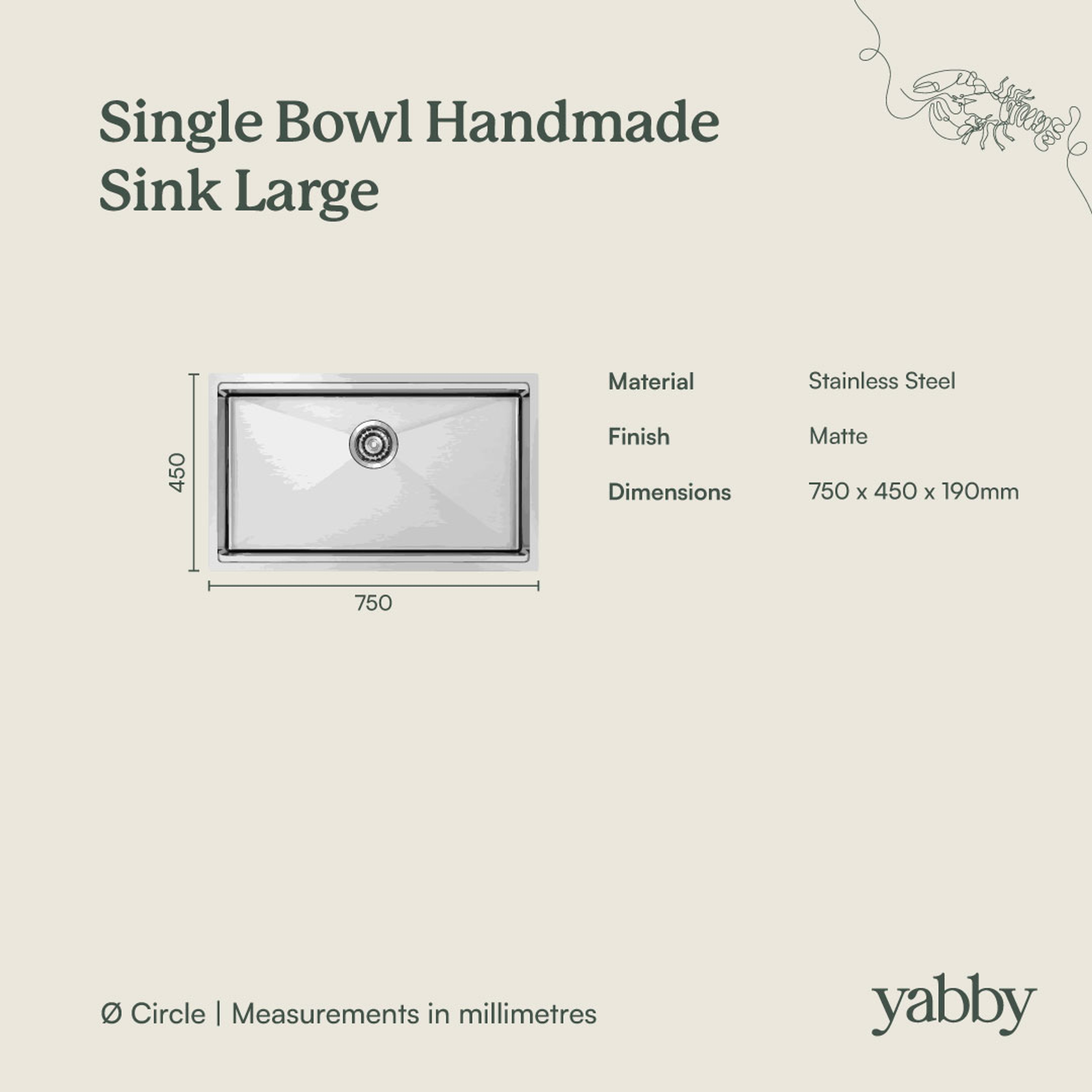 The Large Single Bowl Handmade Sink in Stainless Steel is made for real life washing up. The roomy single bowl lets you stack dishes, soak pans and still have space to rinse fruit and veg. Durable stainless steel is easy to clean and works in both kitchens and laundries, making everyday jobs feel more manageable.