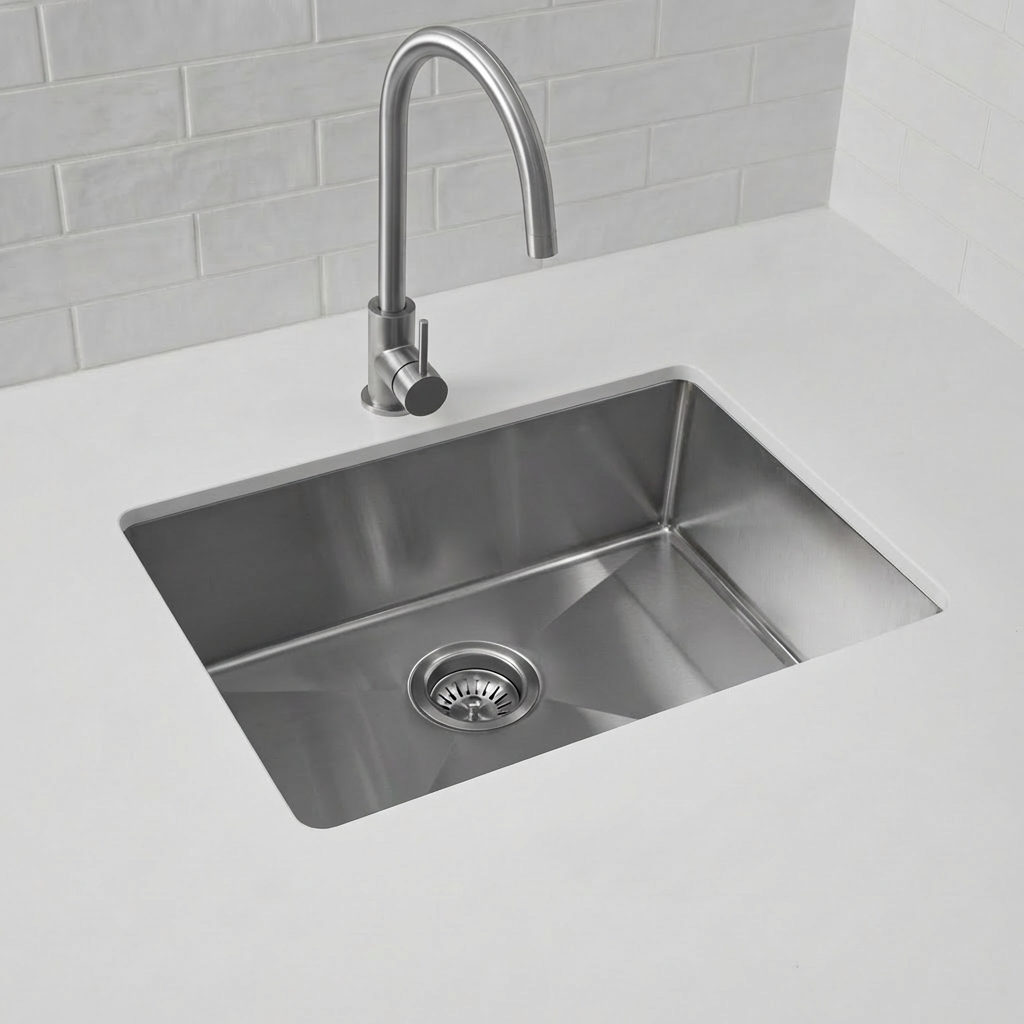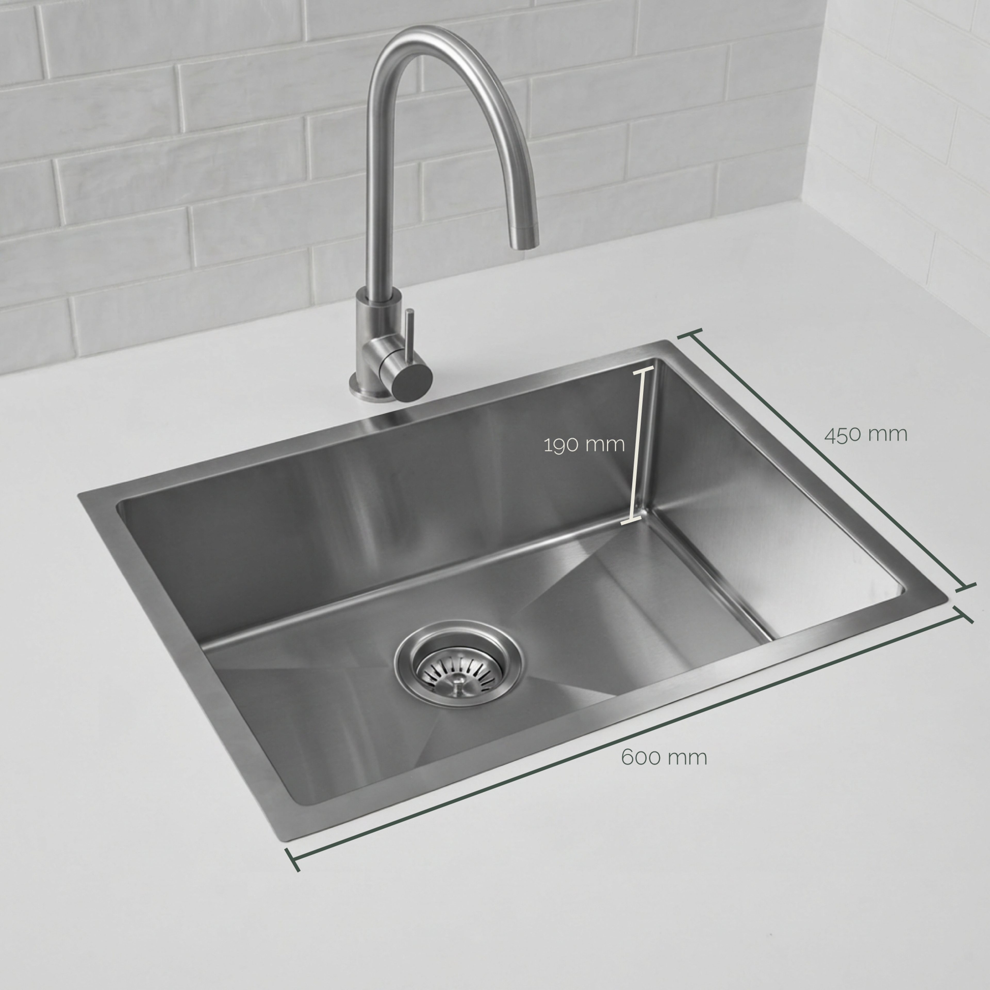The Single Bowl Sink 600x450mm Stainless Steel is designed for everyday practicality. The roomy single bowl lets you soak pans, stack dishes and still have space to rinse fruit and veg. Durable matte stainless steel is easy to wipe clean and suits busy kitchens, butler pantries and laundries.