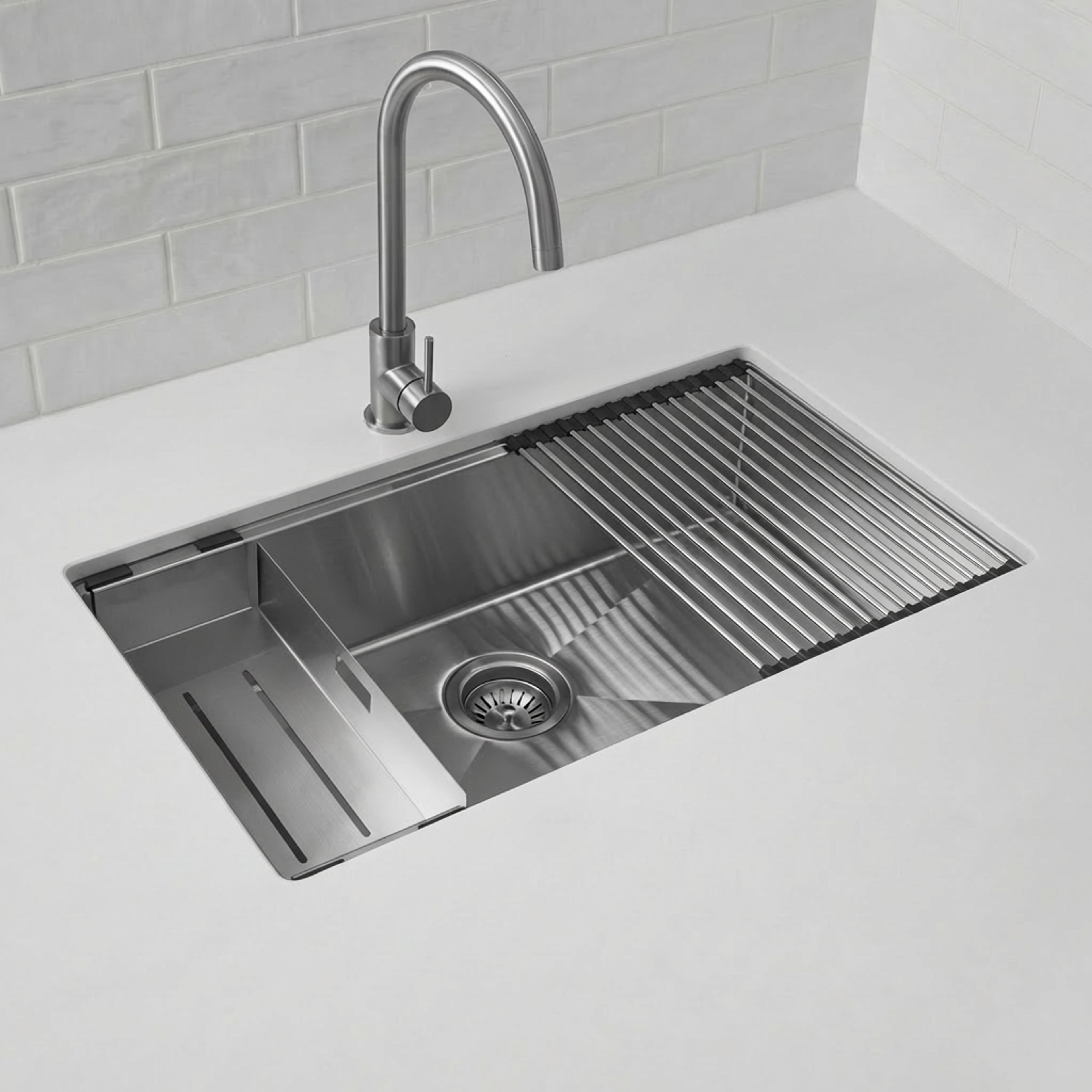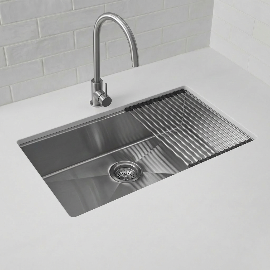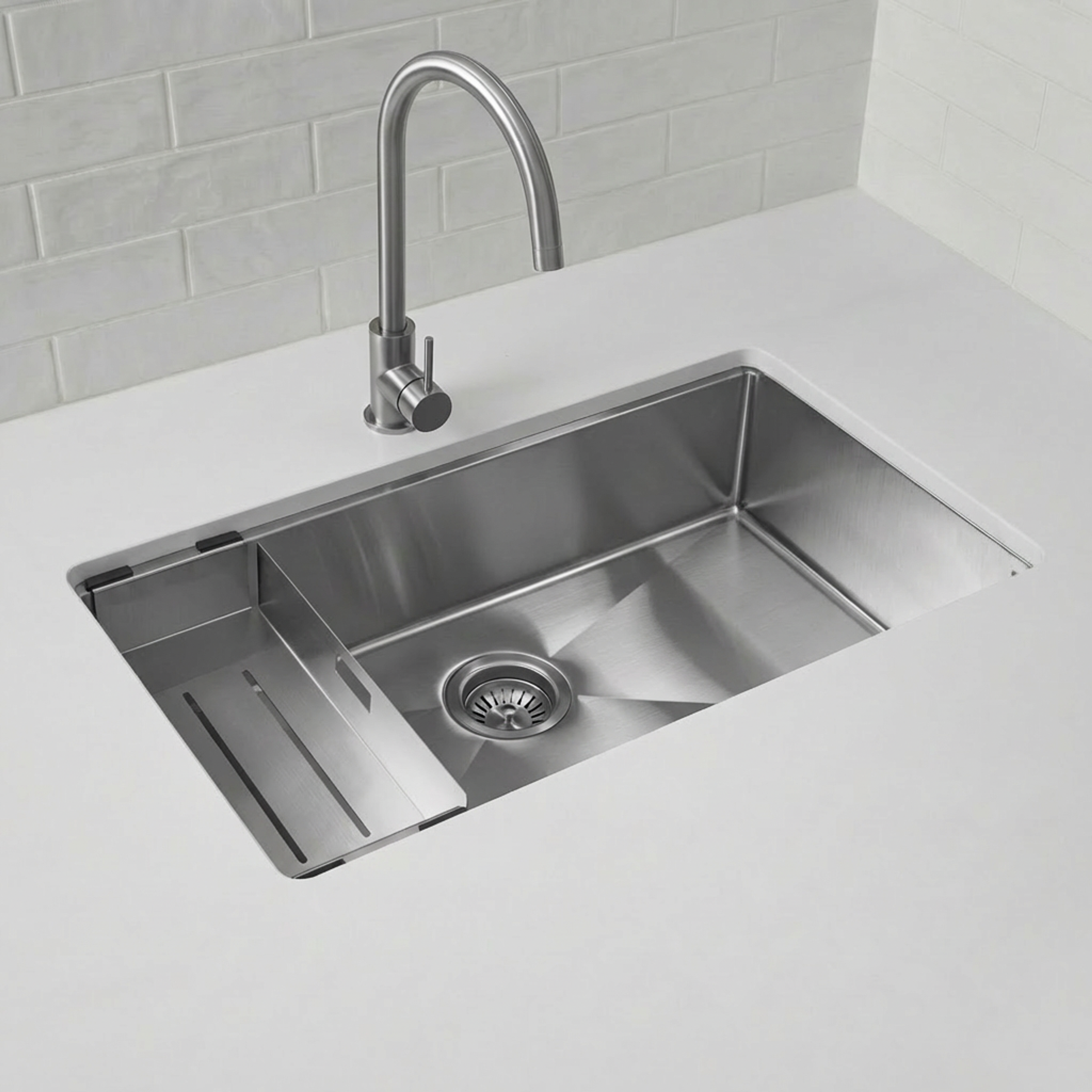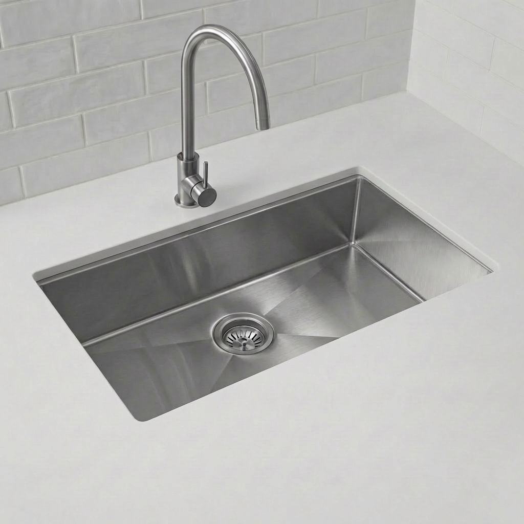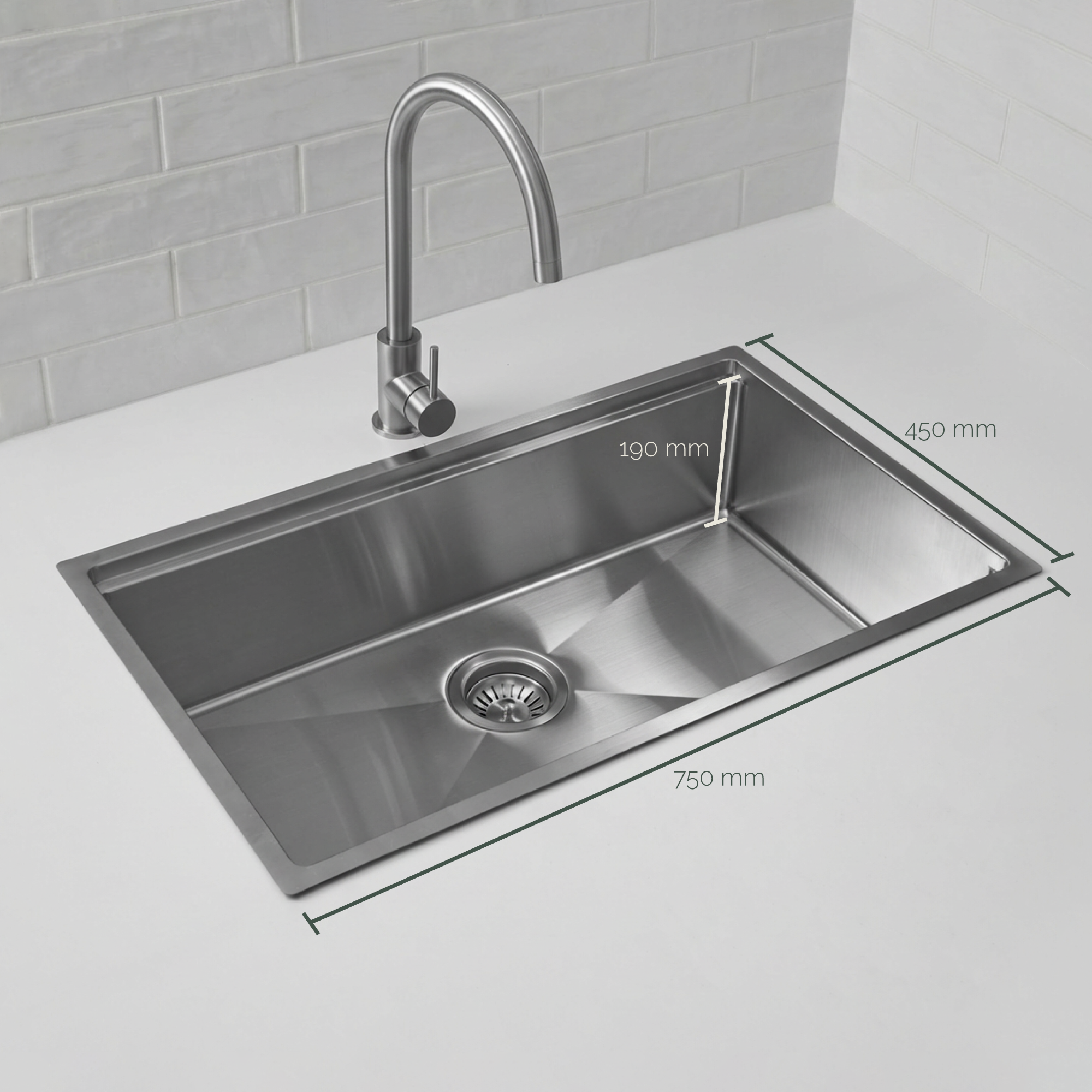 The Single Bowl Sink 750x450mm Stainless Steel brings a generous, contemporary basin to family kitchens and butler pantries. Its wide, deep bowl comfortably fits baking trays, stock pots and cutting boards, keeping benches clear while you cook. The soft matte stainless finish sits easily with stone or timber tops and supports a calm, design led space.