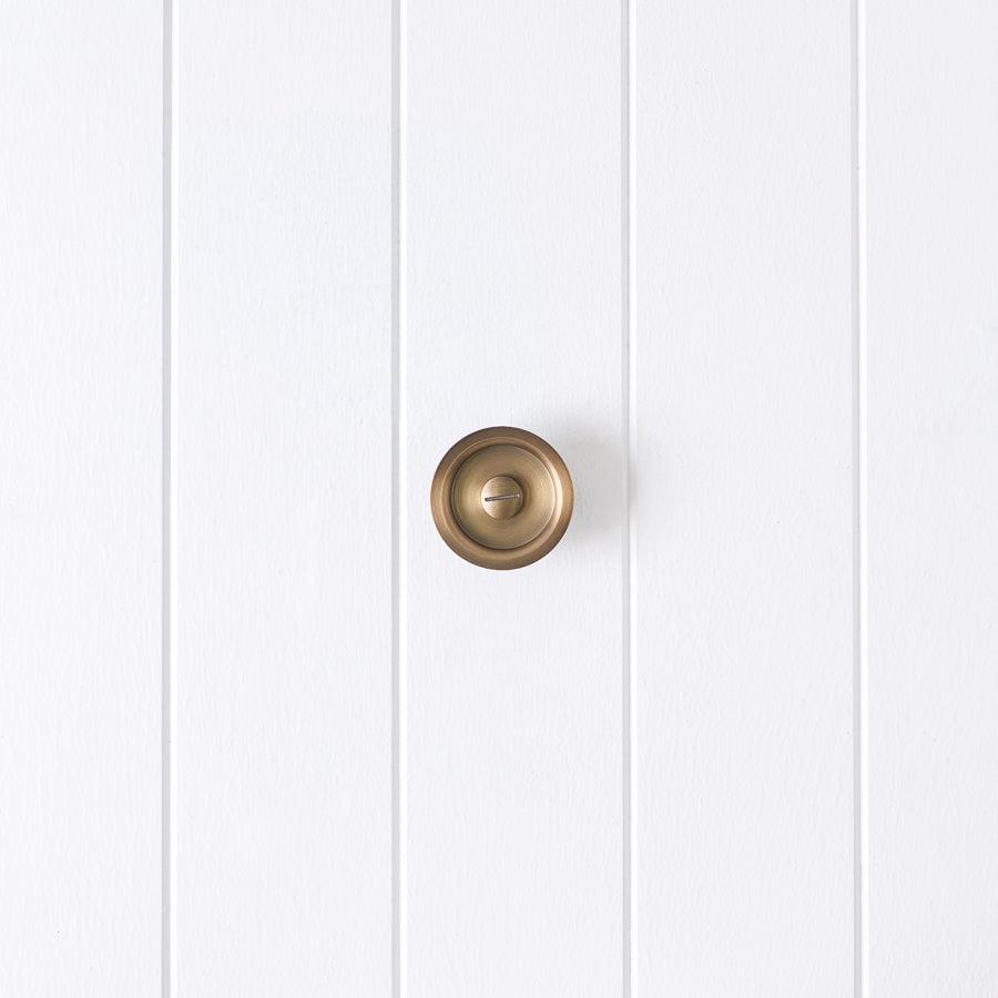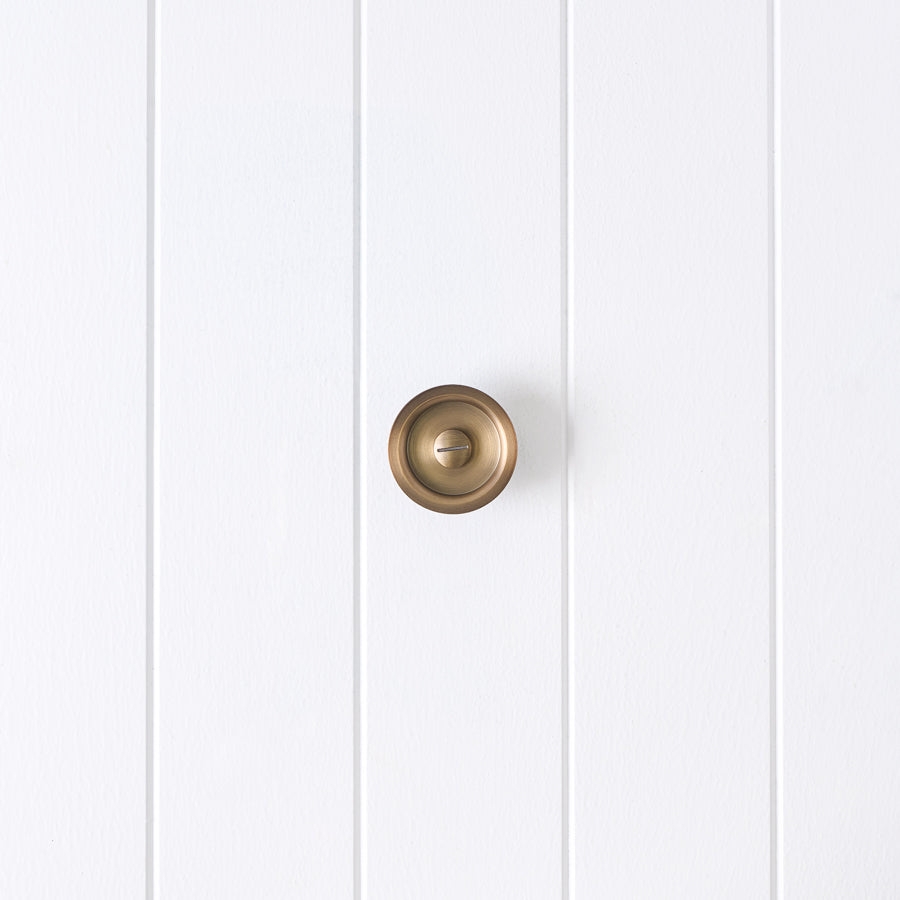 The Sliding Door Lock in Antique Brass is a straightforward way to add privacy to a sliding door. The stainless steel body is tough, and the thumb turn is easy to use for kids and adults. In an emergency, a coin can release the lock from the other side, making it a safe option for family homes.