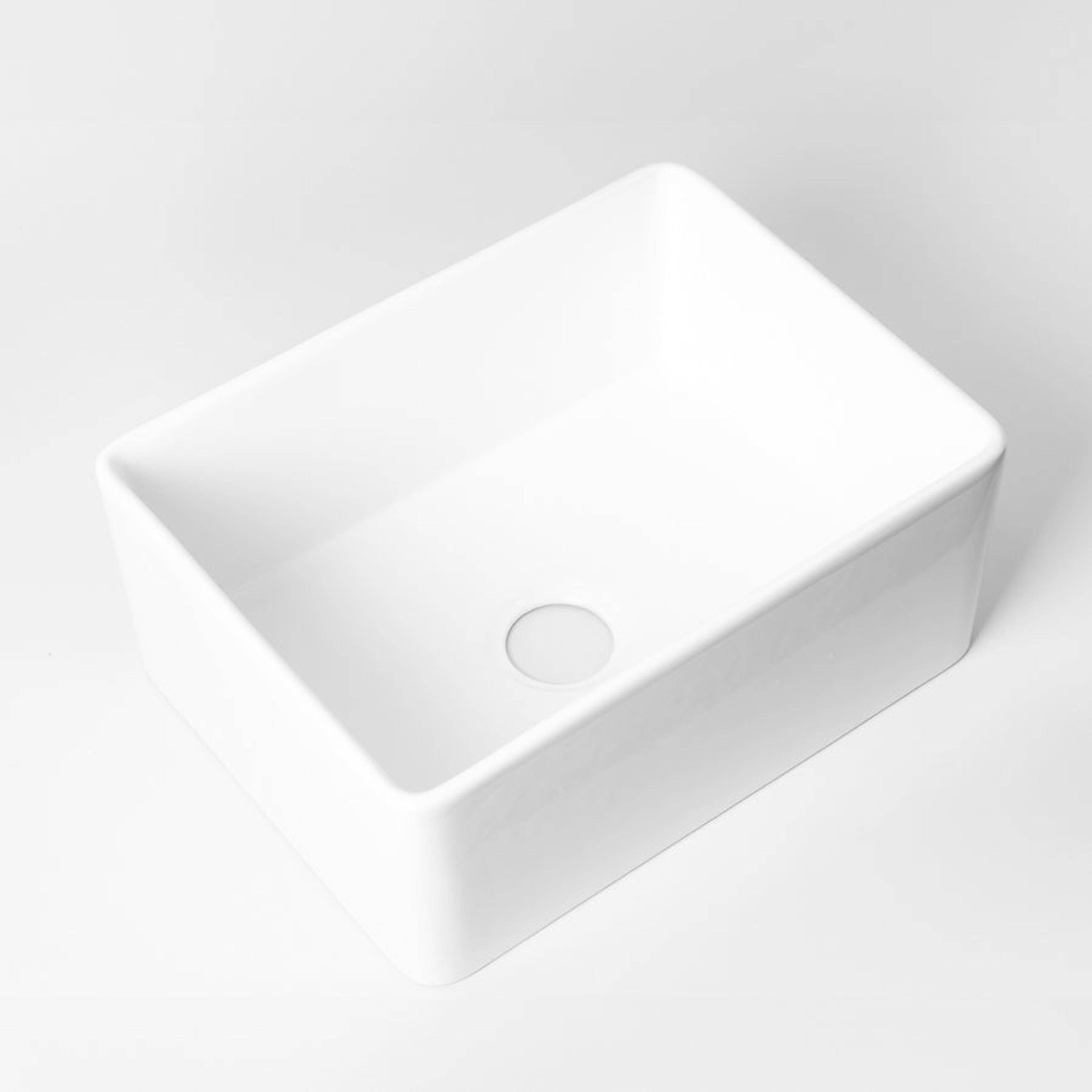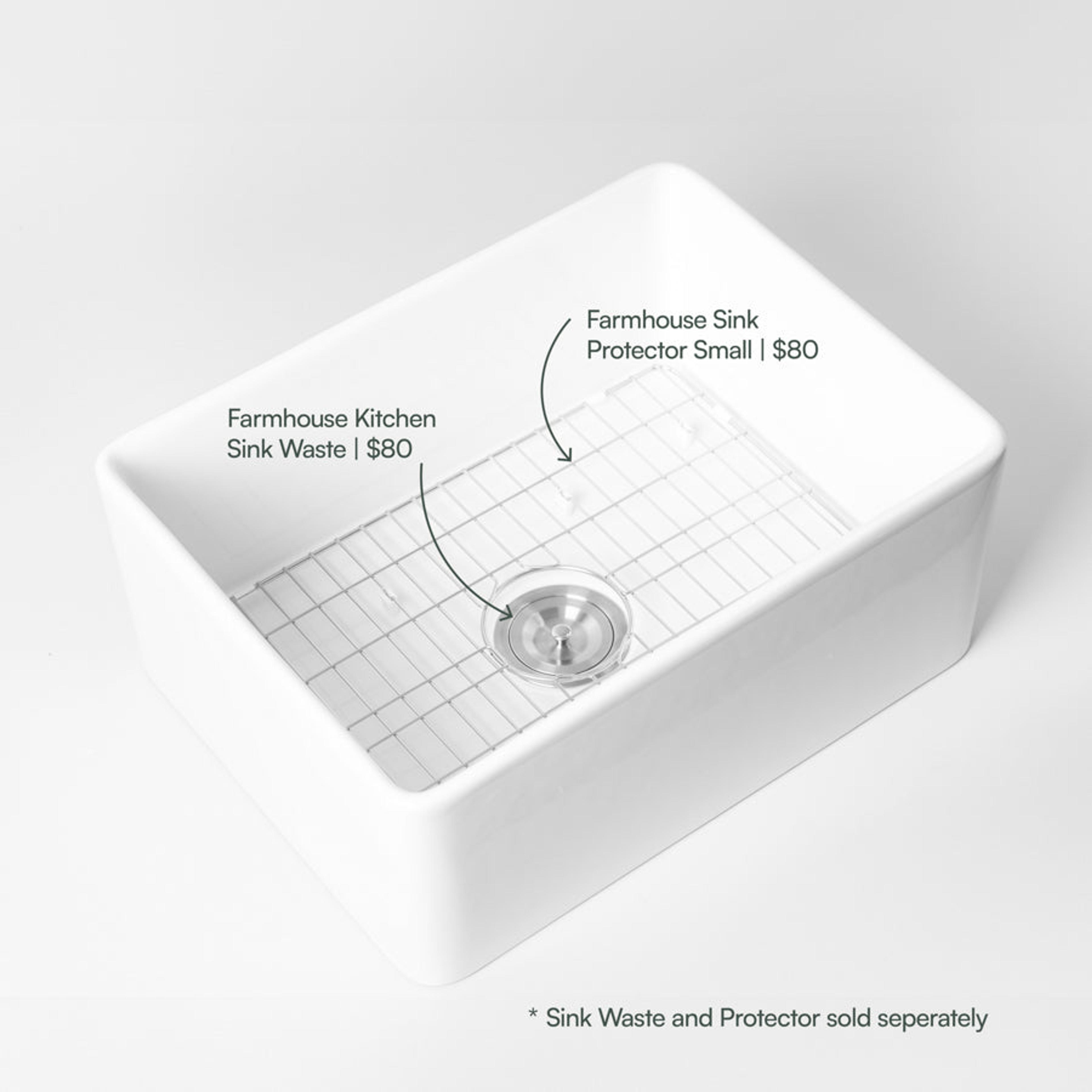 The Small Farmhouse Fireclay Sink in White is ideal when you want farmhouse style without needing a huge cabinet. The deep ceramic bowl is tough, easy to wipe clean and great for soaking dishes or rinsing veg. Its glossy finish looks fresh for years, making it a practical choice for busy family spaces.