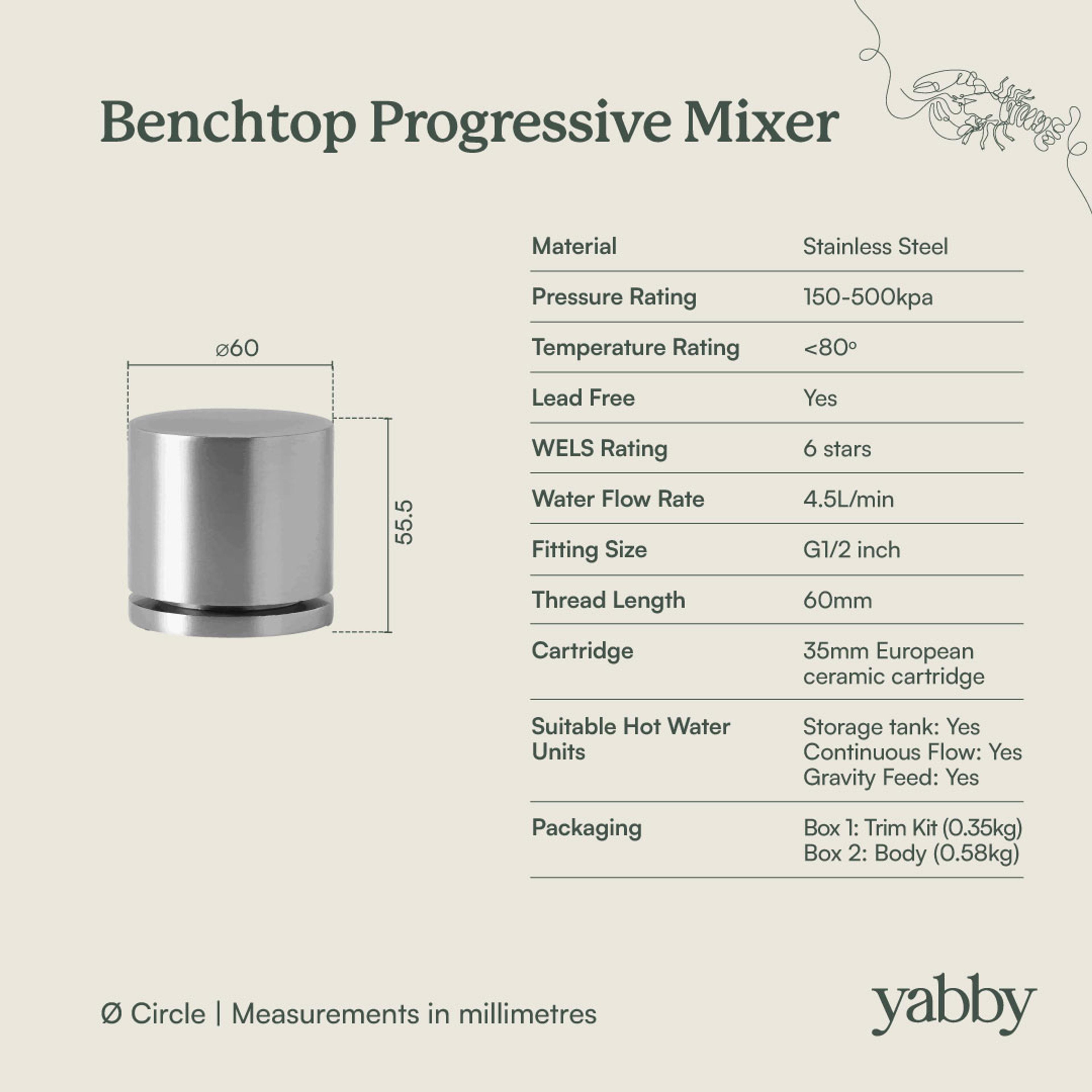 Sydney Basin Spout + Benchtop Progressive Mixer Stainless Steel
