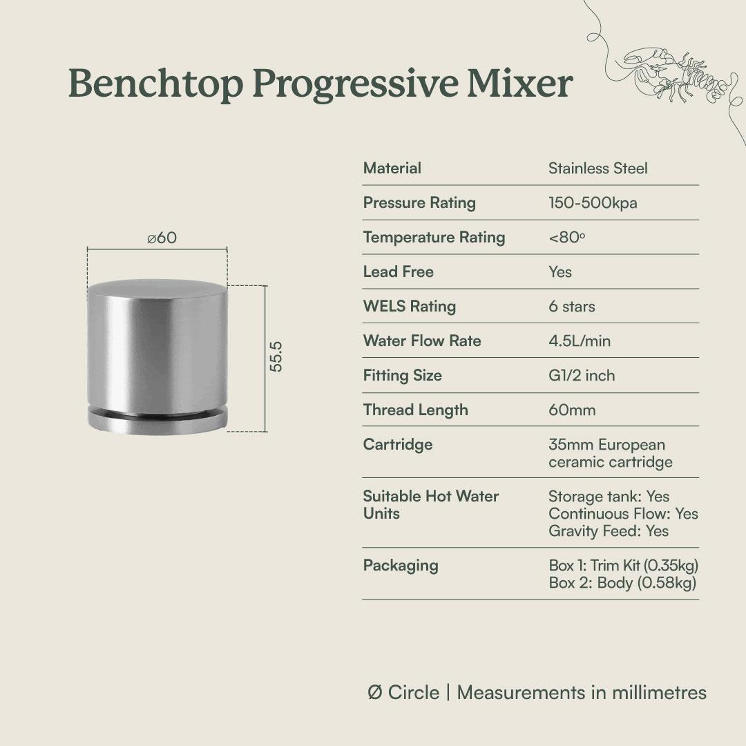 Sydney Basin Spout + Benchtop Progressive Mixer Warm Brushed Nickel