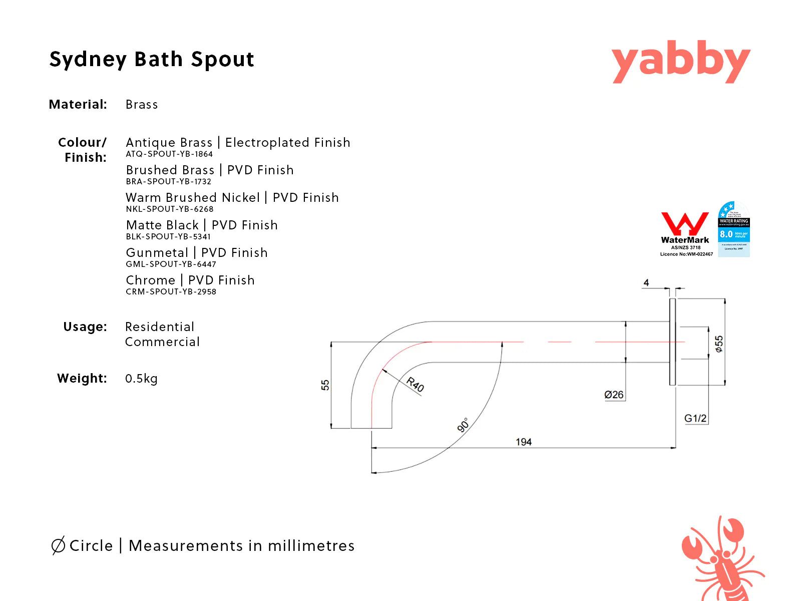 | Brand | Yabby Tapware |