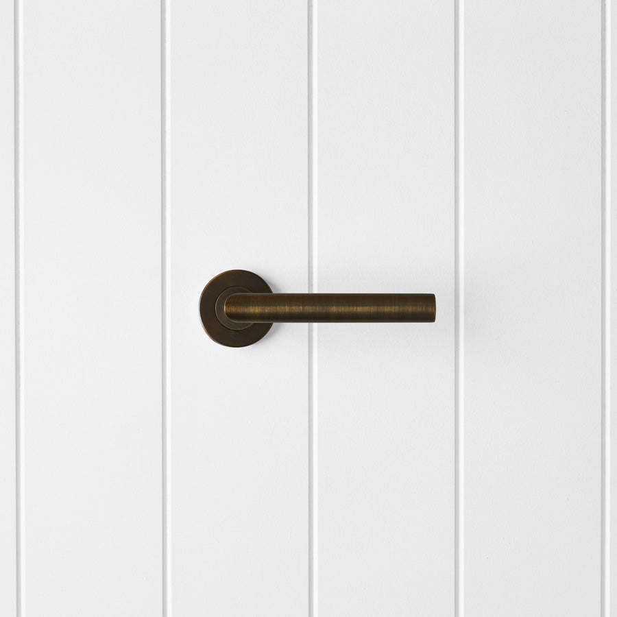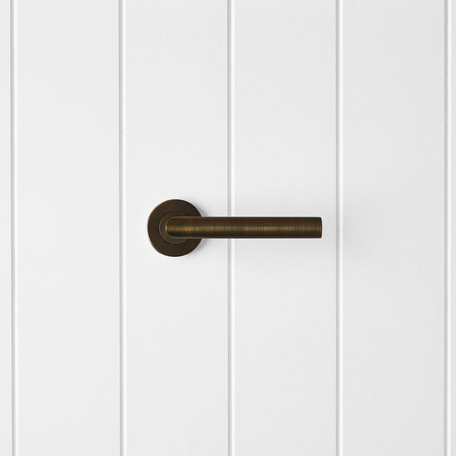The Sydney Door Handle in Antique Brass is a sturdy stainless steel lever that is easy to grip and use every day. The antique brass finish hides fingerprints and works well on bedroom and bathroom doors. A practical internal door handle for family homes.