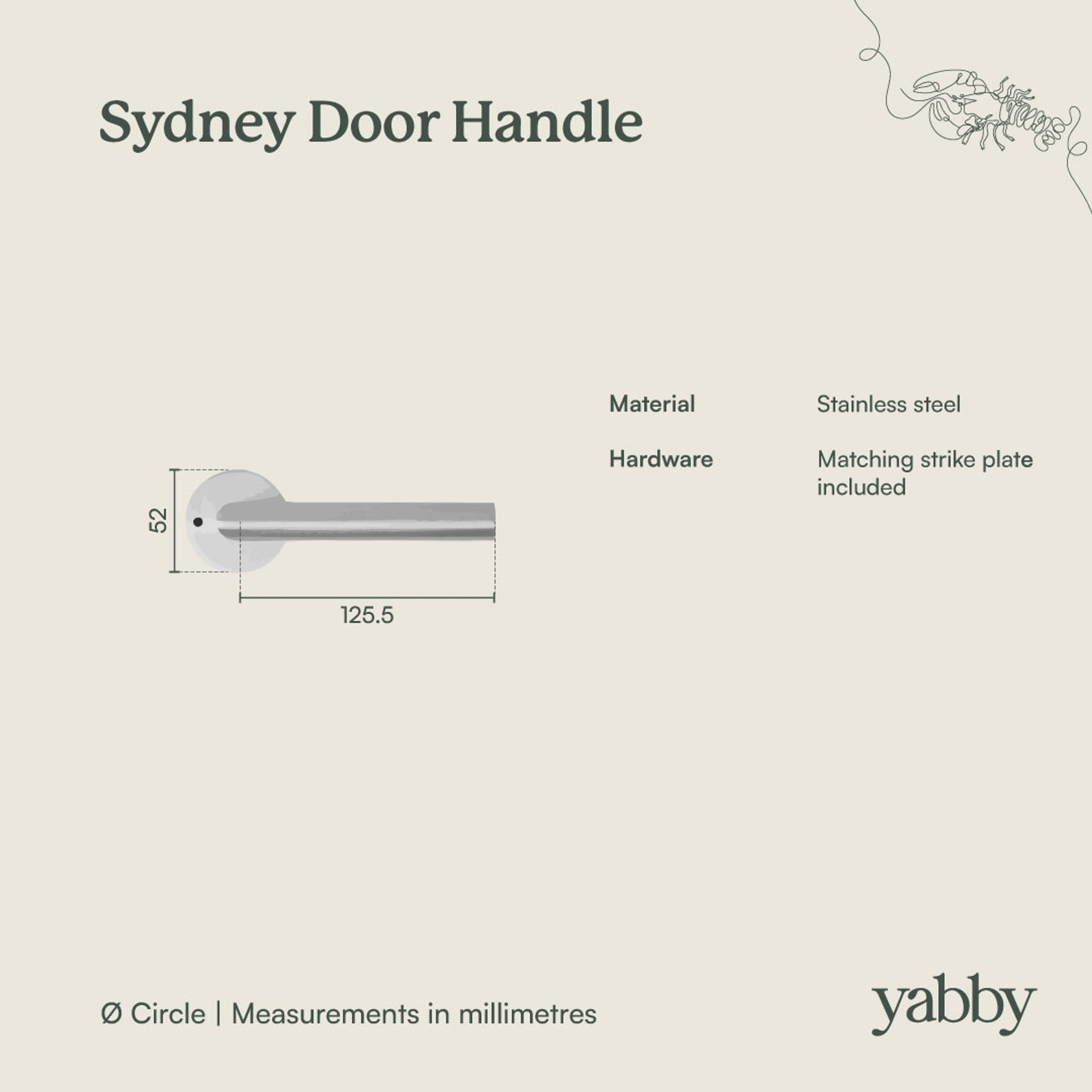 The Sydney Door Handle in Warm Brushed Nickel is a great all rounder for renovations. The stainless steel body is durable and the warm brushed finish blends easily with most hinges and tapware. A comfortable internal door handle that feels good in daily use.