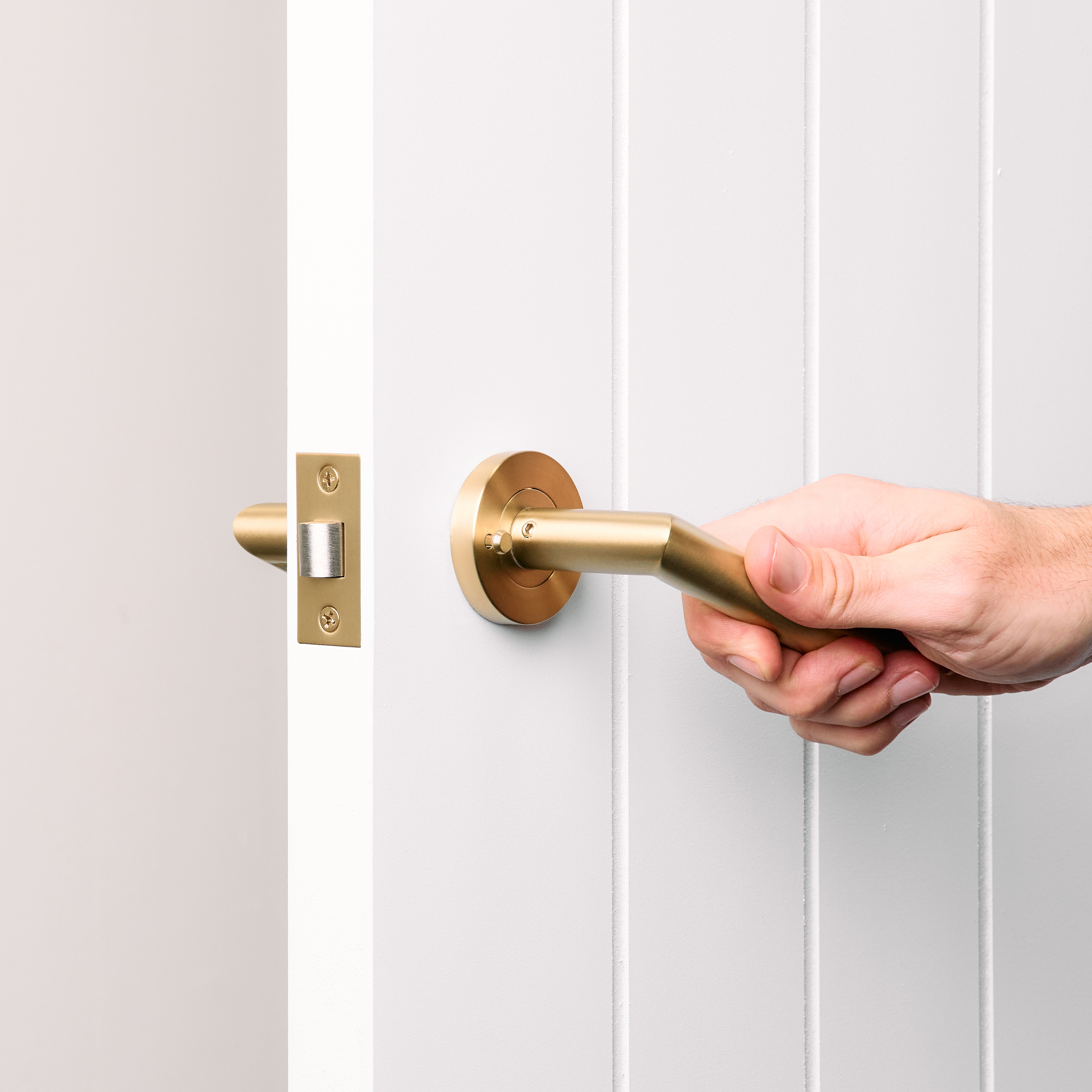 The Sydney Door Handle with Lock in Brushed Brass is ideal for family bathrooms and home offices. The stainless steel construction stands up to daily use, and the smooth thumb turn makes locking and unlocking simple. A dependable brushed brass privacy door handle that updates doors in one go.