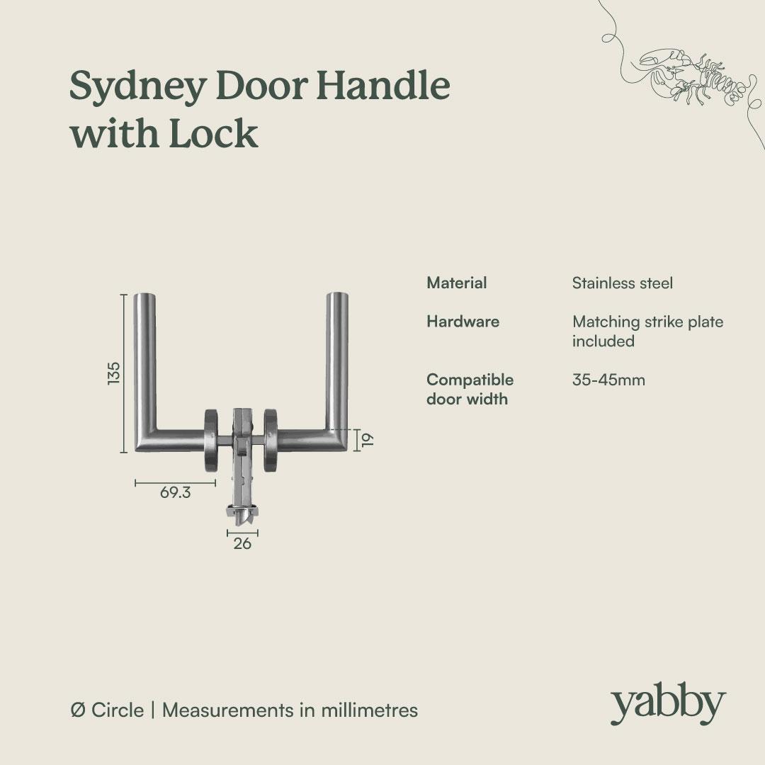 The Sydney Door Handle with Lock in Warm Brushed Nickel suits renovations where you need one finish to match many fittings. The stainless steel body is durable and the warm brushed surface hides small marks. With its built in lock, it is a straightforward privacy door handle for bedrooms and bathrooms.
