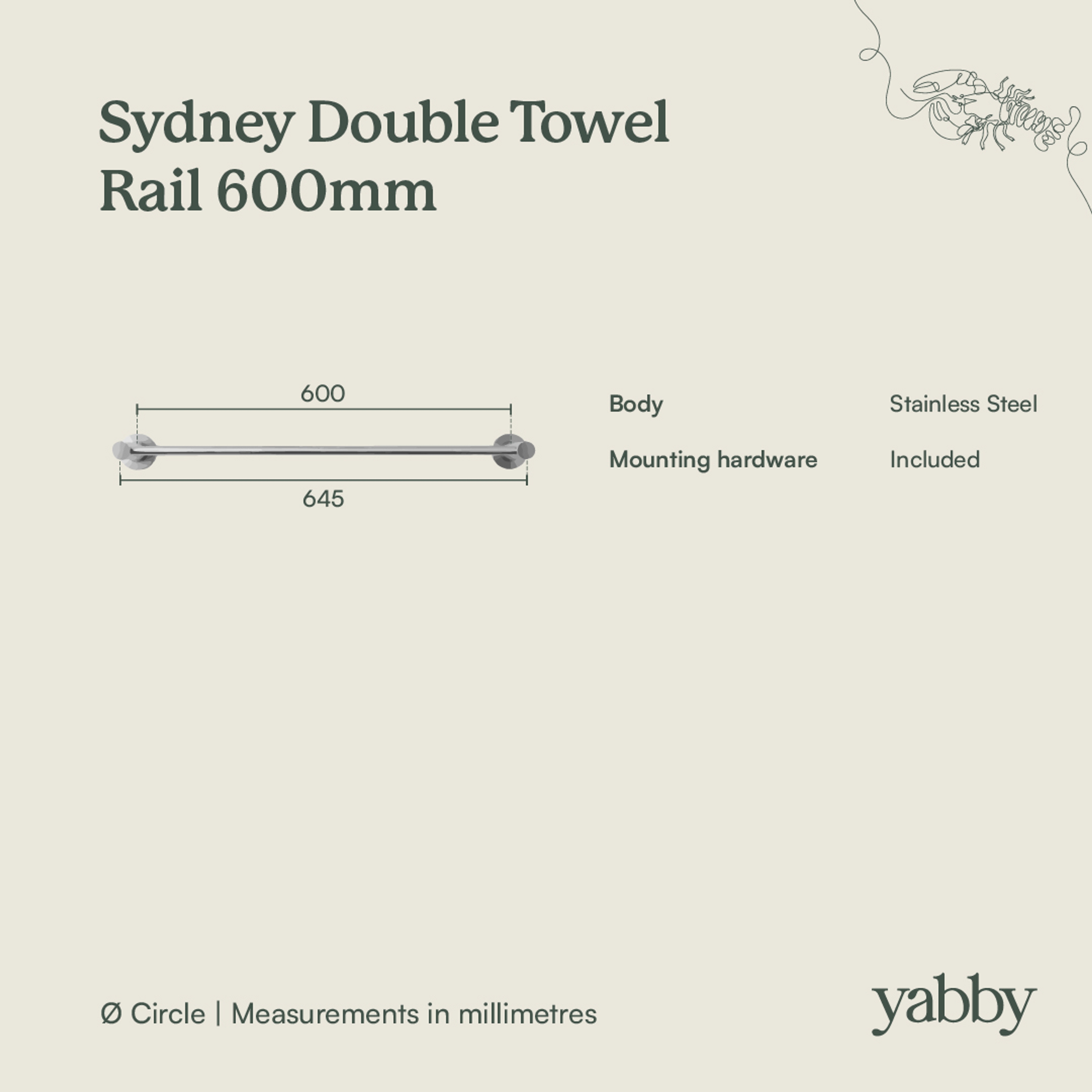 The Sydney Double Towel Rail in Matte Black (600mm) keeps two towels organised without crowding the bathroom. The stainless steel body is tough, and the matte finish is forgiving on everyday marks. A practical double rail for households that prefer black hardware.