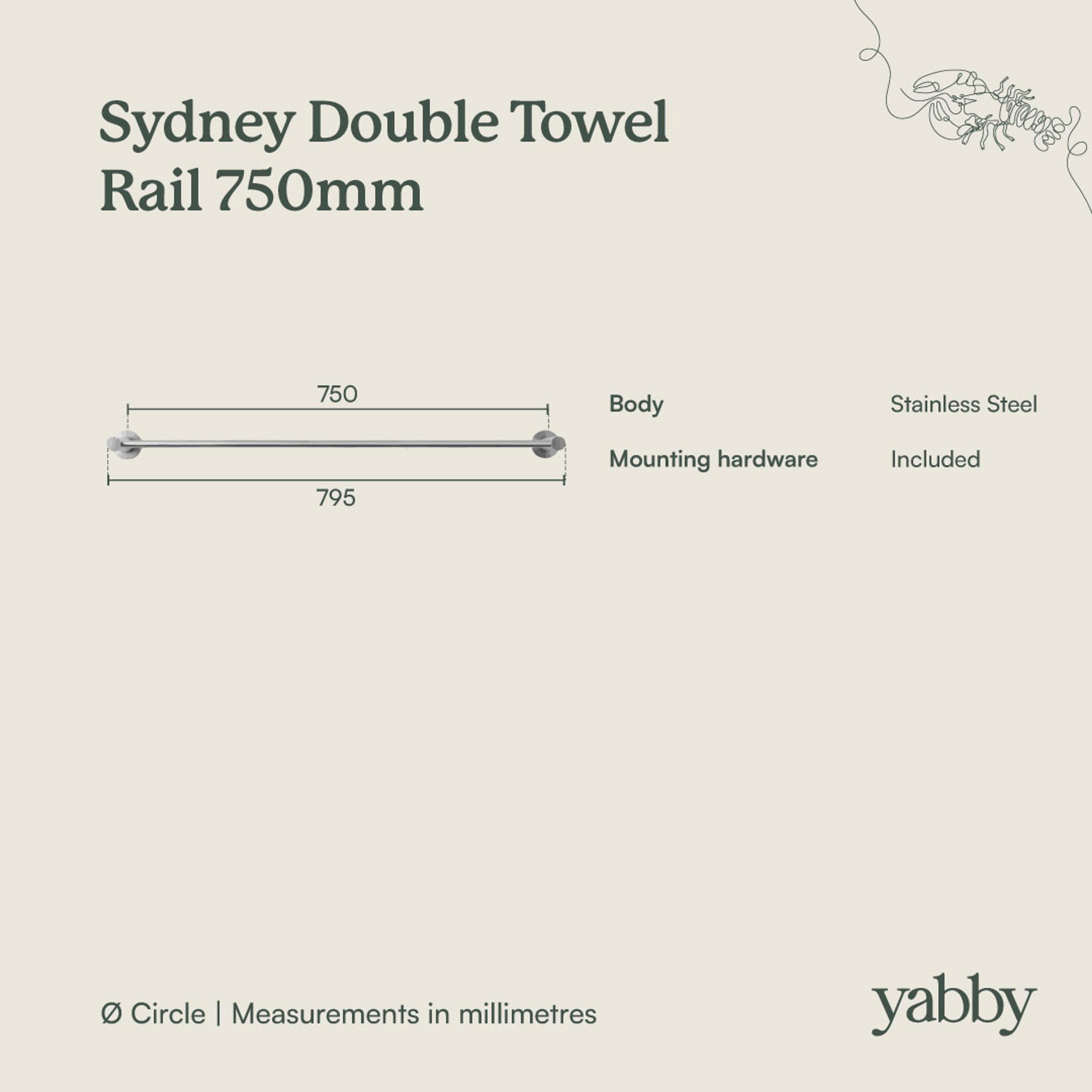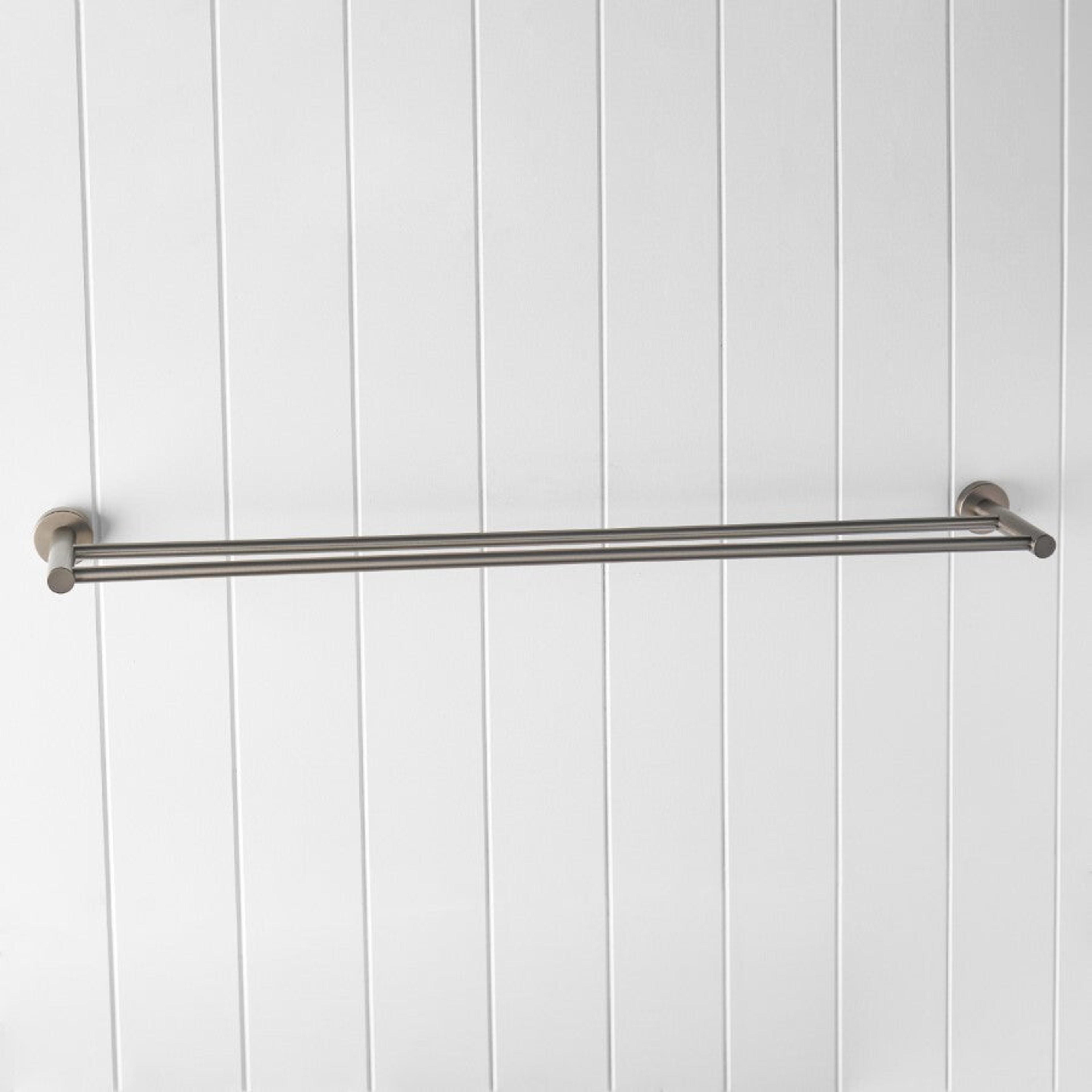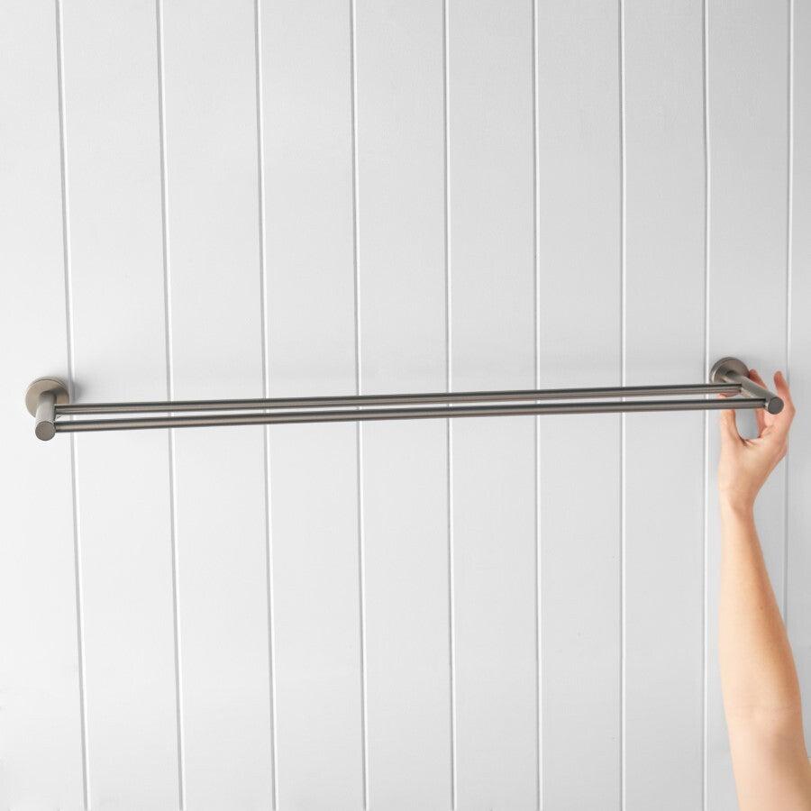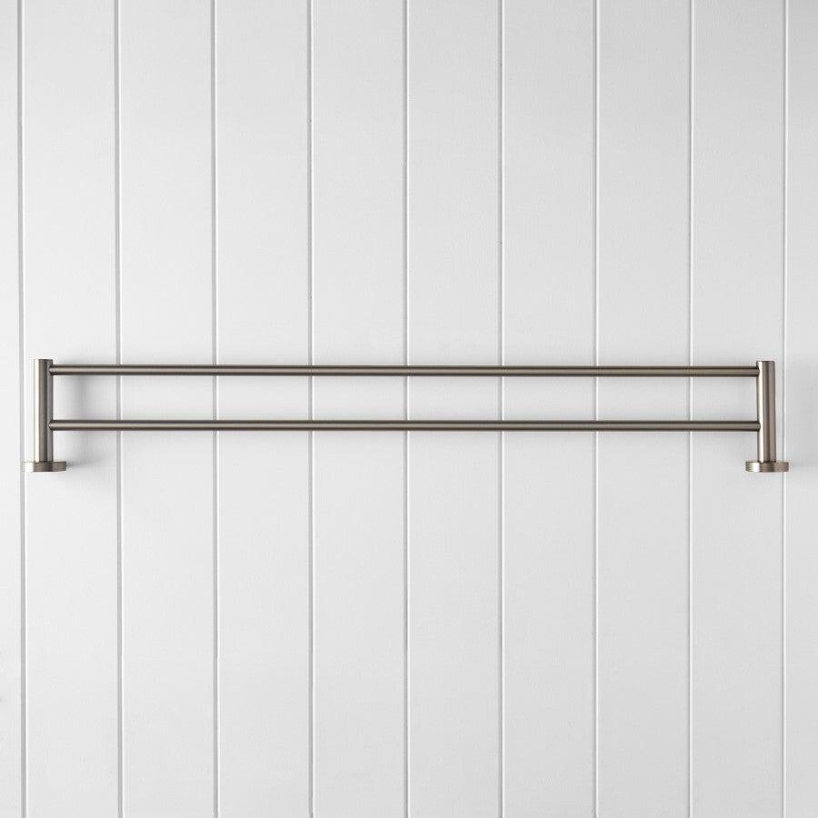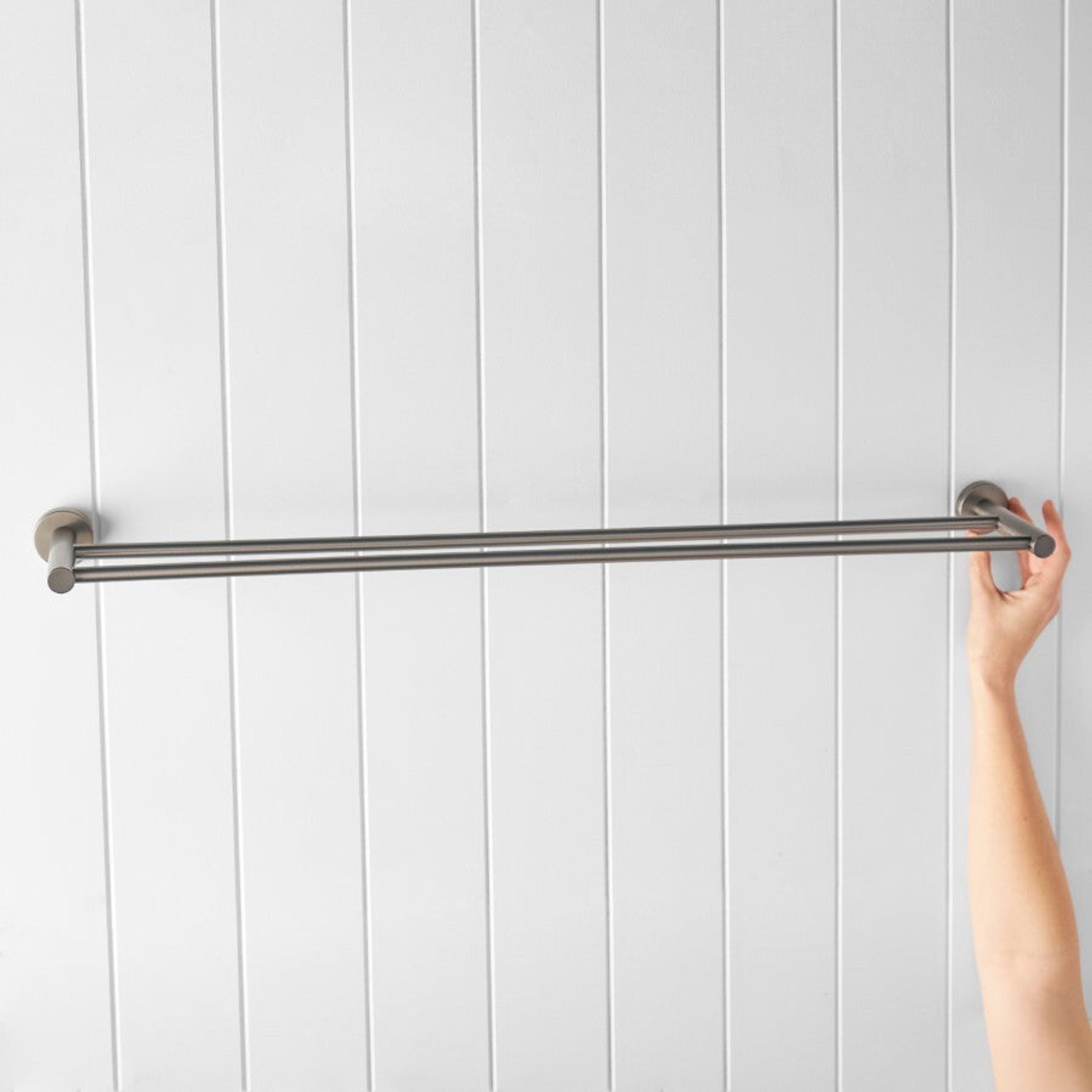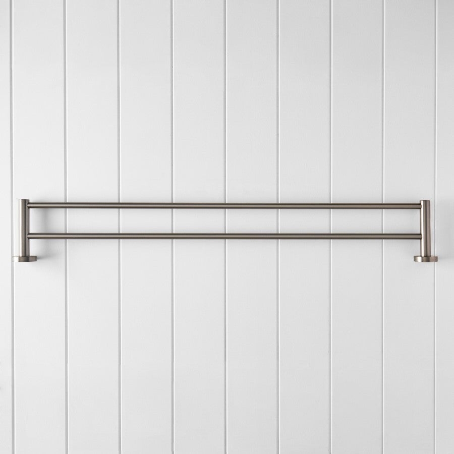 The Sydney Double Towel Rail in Gunmetal (750mm) suits homes wanting modern hardware that still works hard. The stainless steel body is tough, and the soft gunmetal finish helps hide fingerprints. Two wide rails make it easy to hang separate towels for partners or kids.