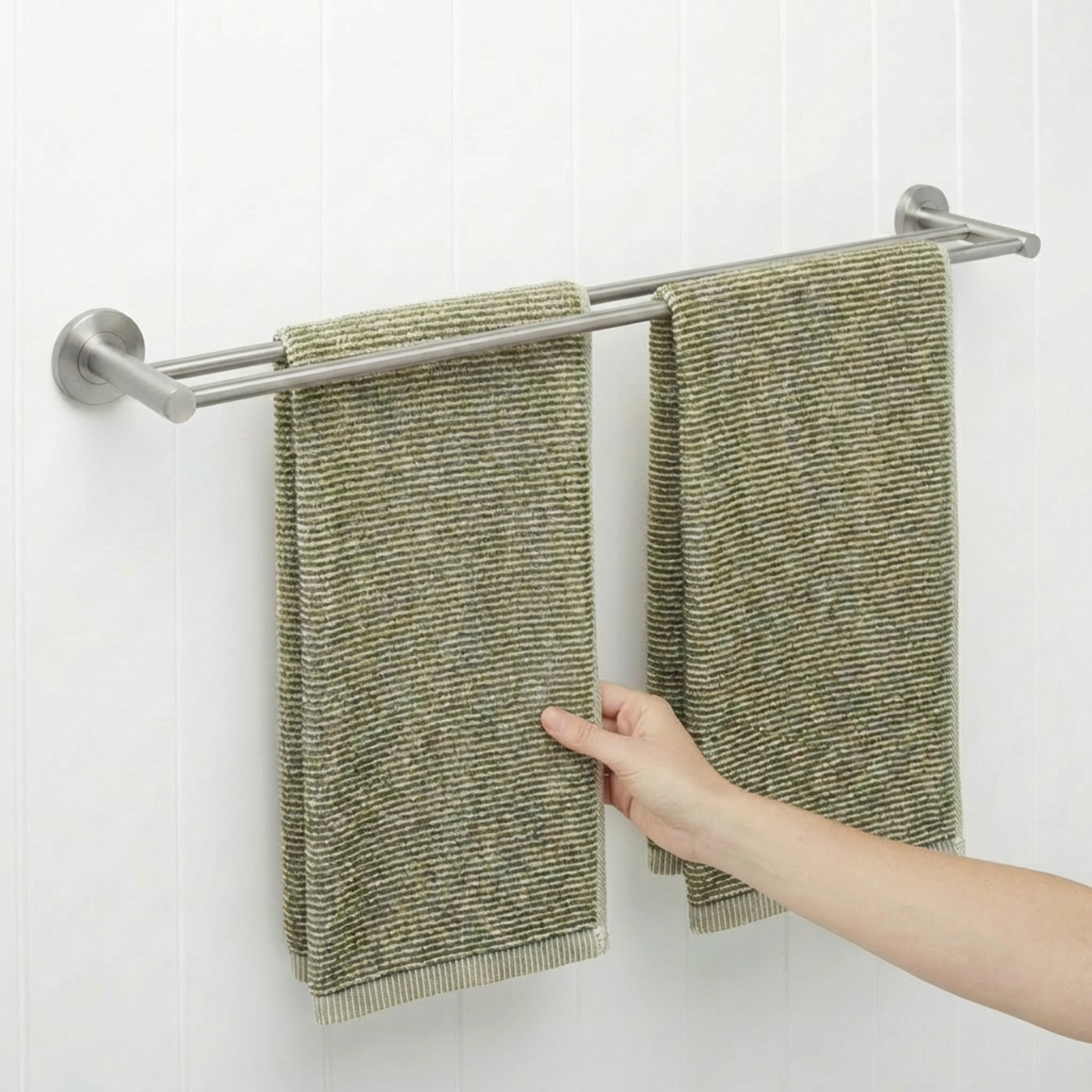 The Sydney Double Towel Rail 750mm in Stainless Steel is designed for bathrooms that need a little extra space. Its clean stainless steel finish brings a refined, contemporary edge while complementing a wide range of tapware styles.