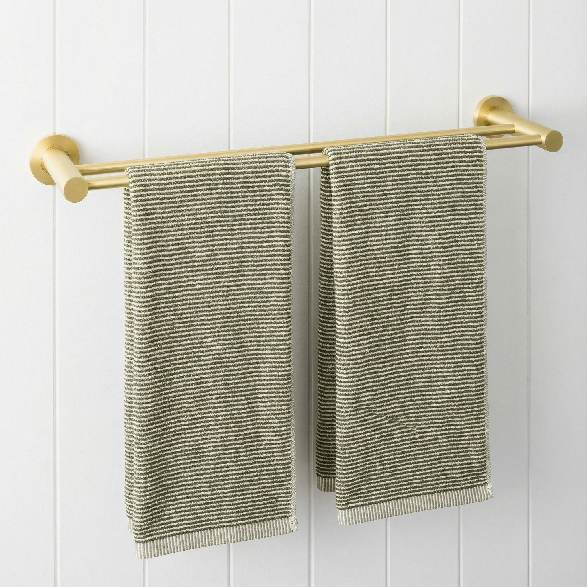 The Sydney Double Towel Rail in Brushed Brass (600mm) keeps two towels off the floor and within easy reach. The stainless steel construction is strong, and the brushed finish is forgiving on fingerprints. Perfect beside a vanity or shower where space is tight but storage matters.