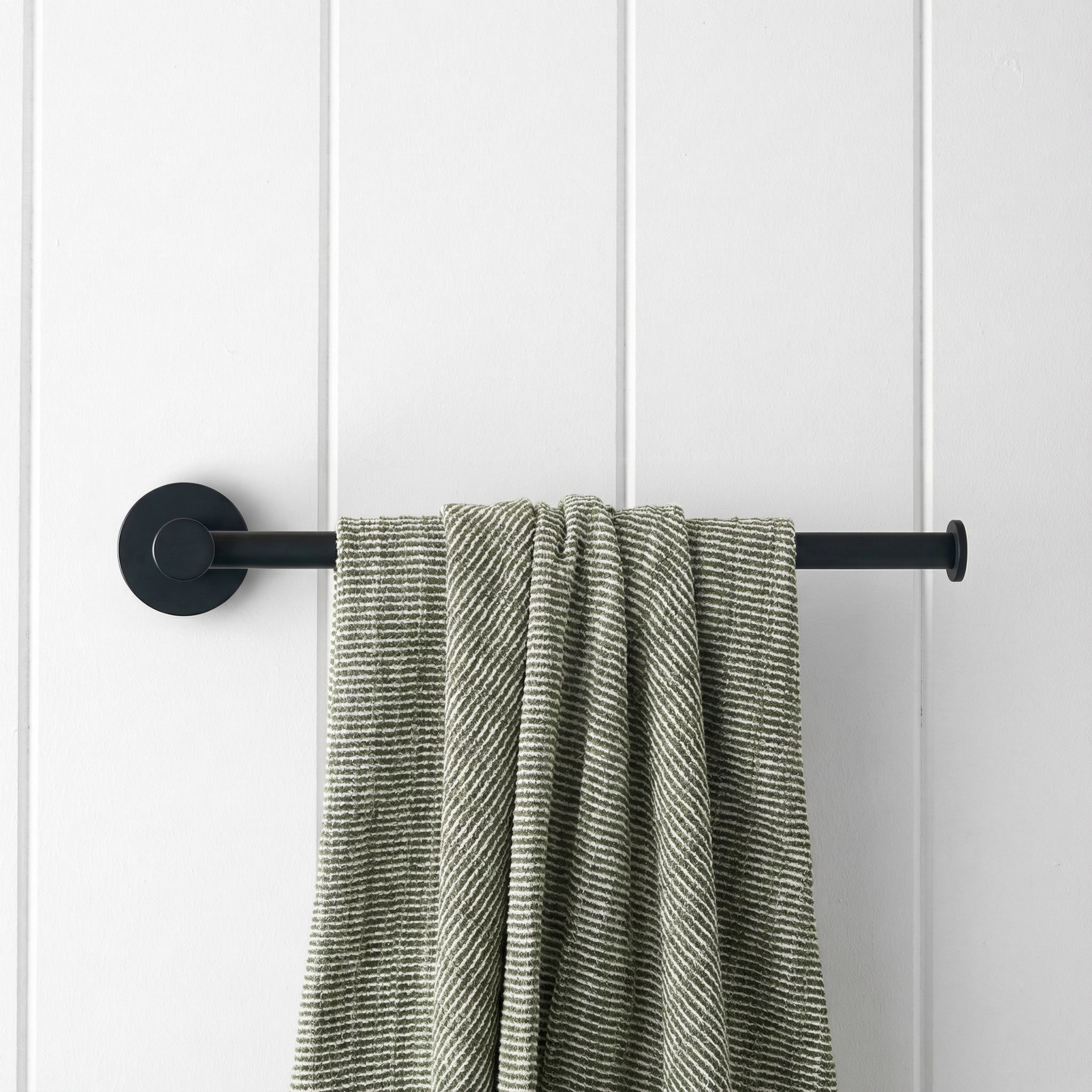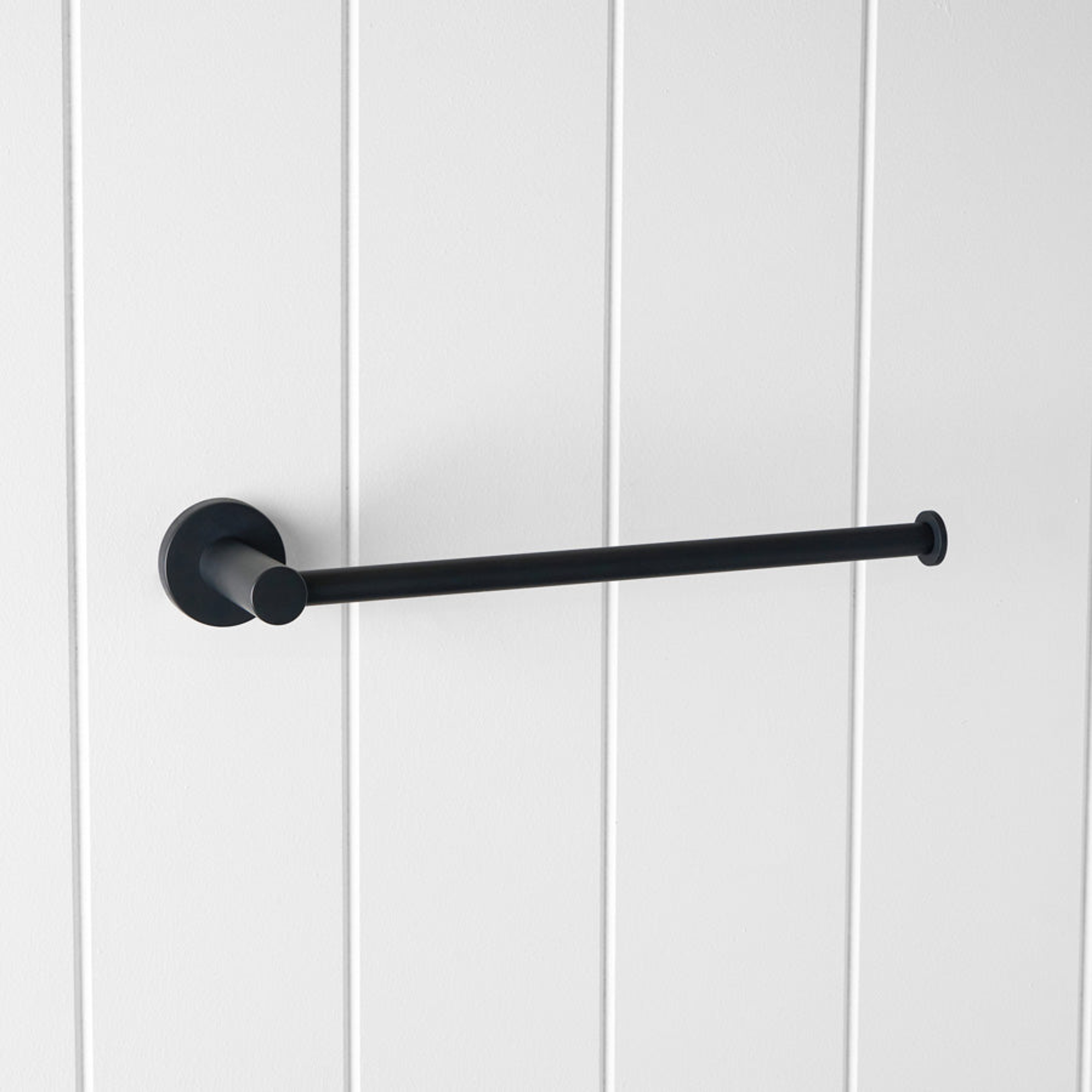 The Sydney Hand Towel Holder in Matte Black keeps the family hand towel off the bench and easy to reach. Stainless steel makes it strong, and the matte finish is forgiving on everyday smudges. A great match for modern black bathroom fittings.