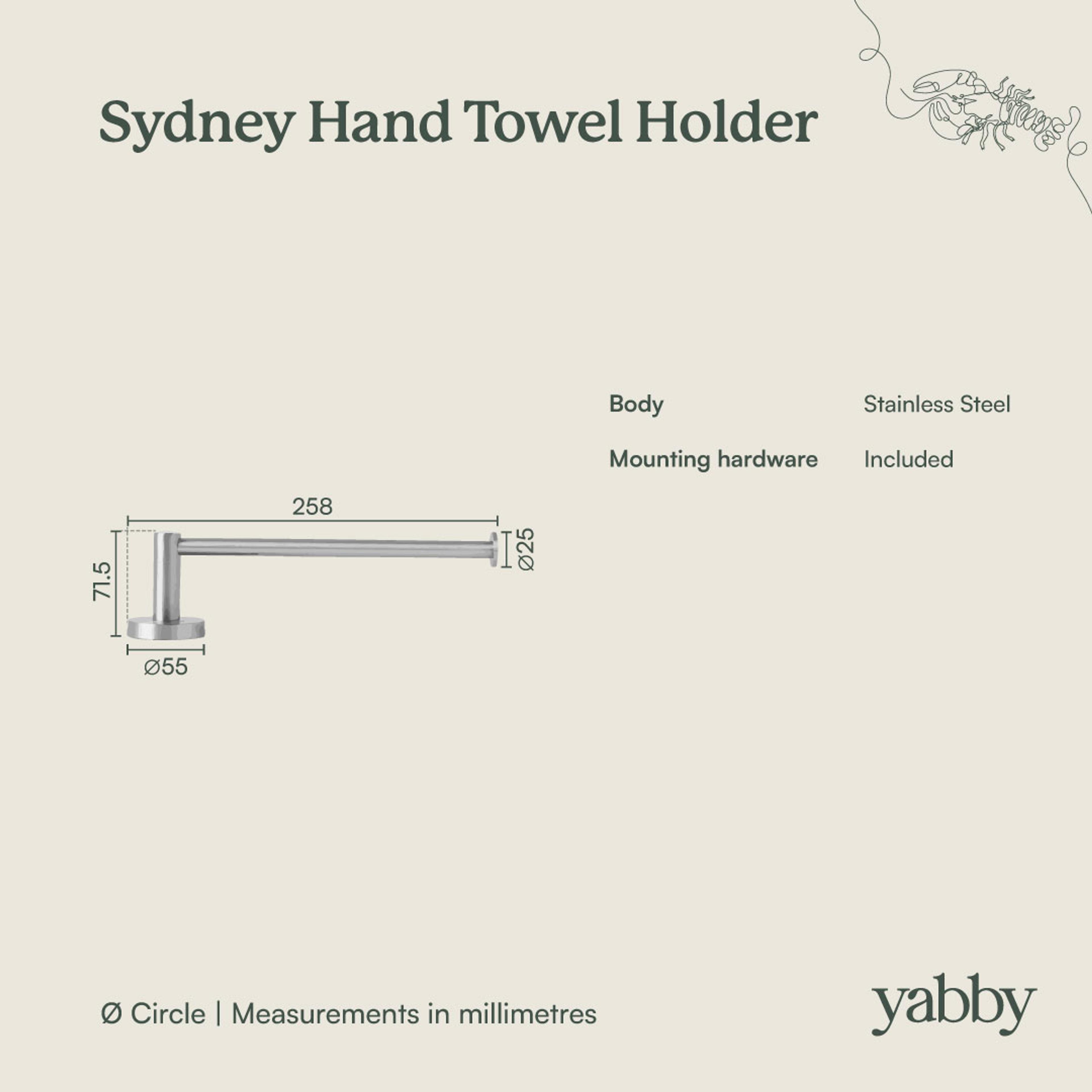 The Sydney Hand Towel Holder in Warm Brushed Nickel is a flexible choice if you like mixing finishes. The stainless steel body is durable, and the warm brushed nickel surface blends easily with tapware and door hardware. Ideal beside the vanity in shared bathrooms.