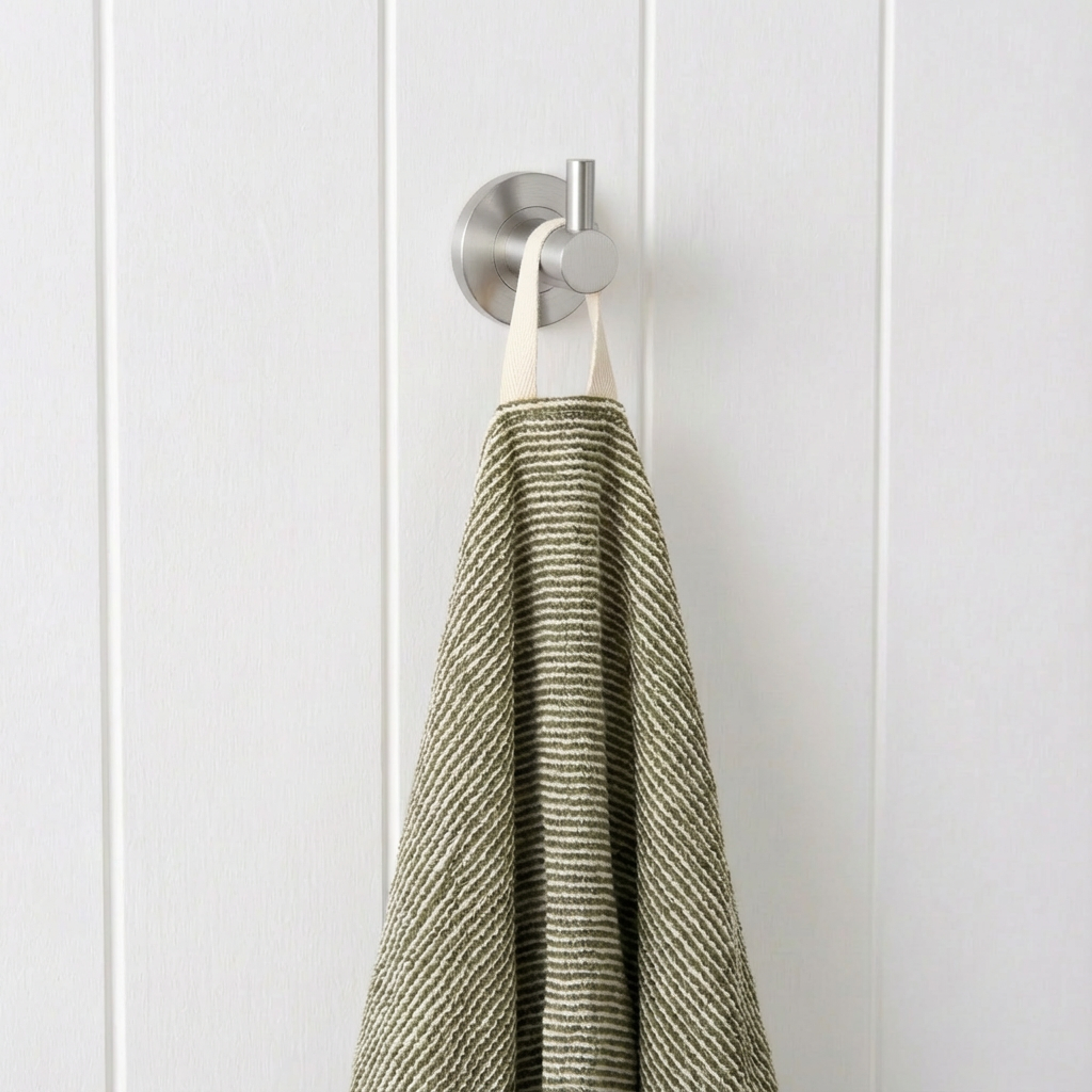 The Sydney Robe Hook in Stainless Steel brings a clean, modern touch to contemporary bathrooms. Its sleek stainless steel finish sits effortlessly against white walls and textured tiles, complementing a wide range of bathroom styles. Designed for everyday convenience, this robe hook keeps robes and hand towels within easy reach while maintaining a neat, uncluttered look.