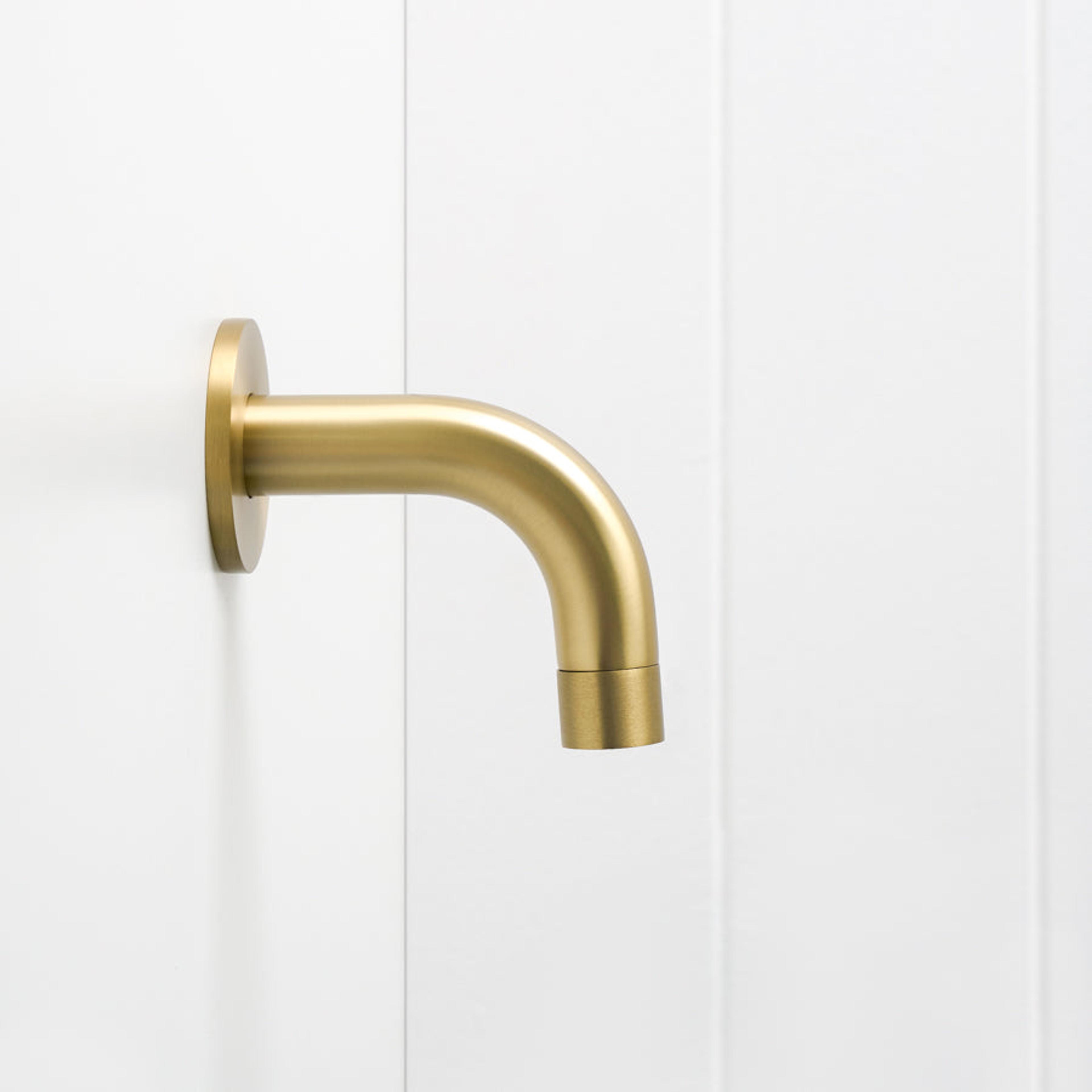 The Sydney Short Wall Spout in Brushed Brass suits renovators wanting a hardworking but stylish wall spout. The brushed surface helps hide fingerprints, while the shorter length reduces water hitting the back of the basin. This stainless steel short wall spout is a sensible option for everyday family use.
