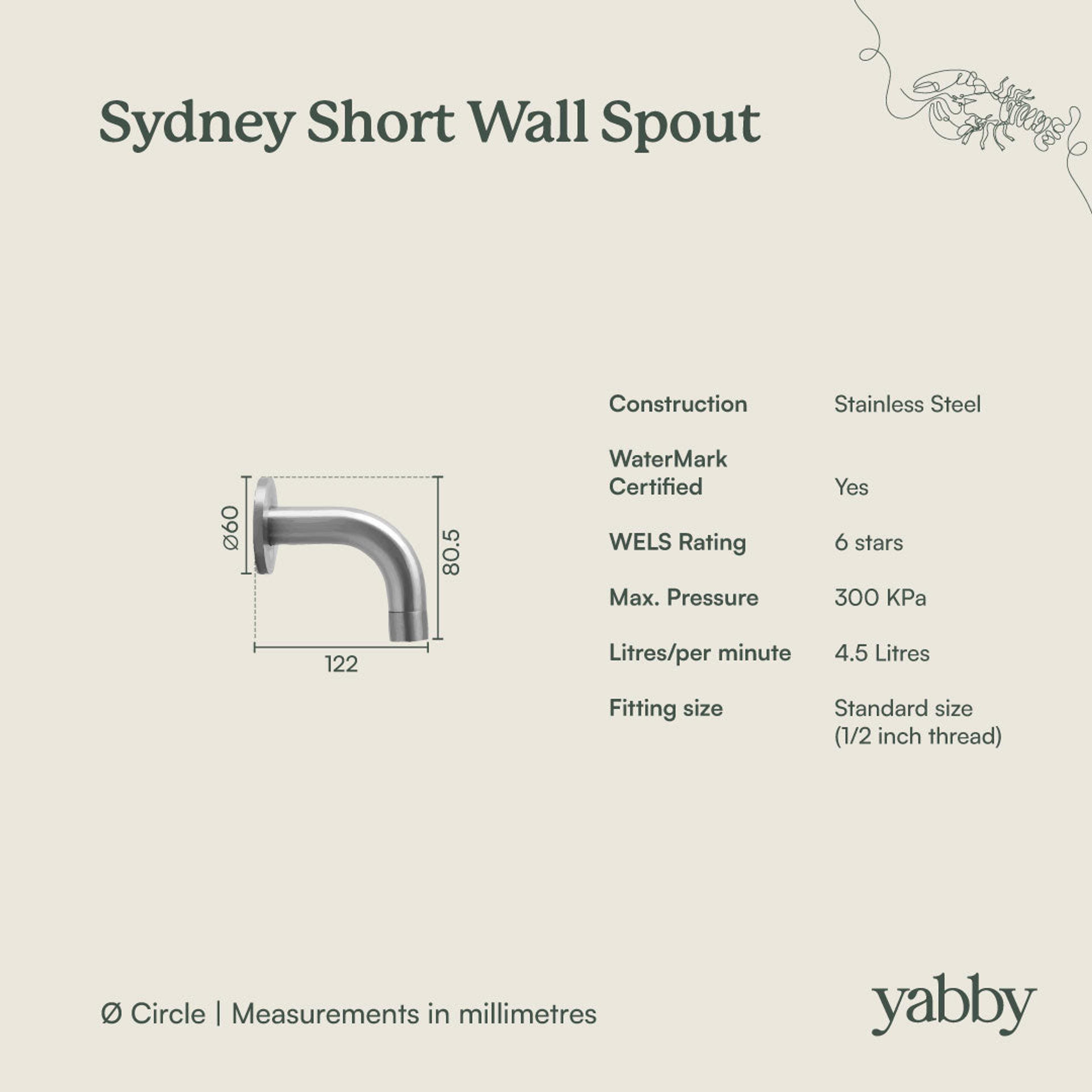 The Sydney Short Wall Spout in Warm Brushed Nickel is ideal if you want a gentle metal colour with everyday practicality. Stainless steel construction is easy to clean, and the shorter projection controls splashing in shallow basins. This short wall spout works well in guest bathrooms and ensuites.