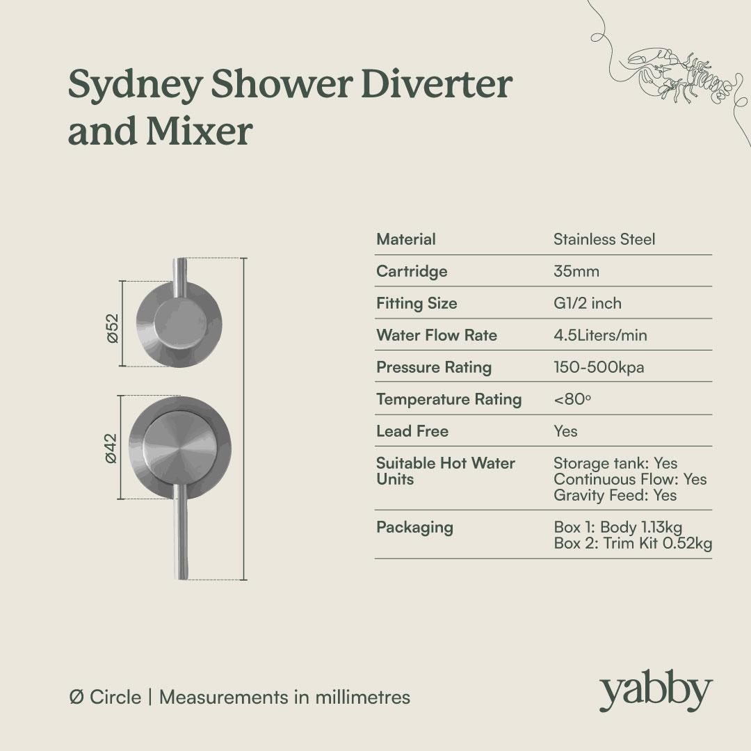The Sydney Shower Diverter and Mixer in Brushed Brass is ideal if you want two shower options without cluttering the wall. The brushed finish helps hide water marks, and the single lever mixer makes setting the right temperature straightforward. It is a dependable shower diverter and mixer that suits busy family bathrooms.