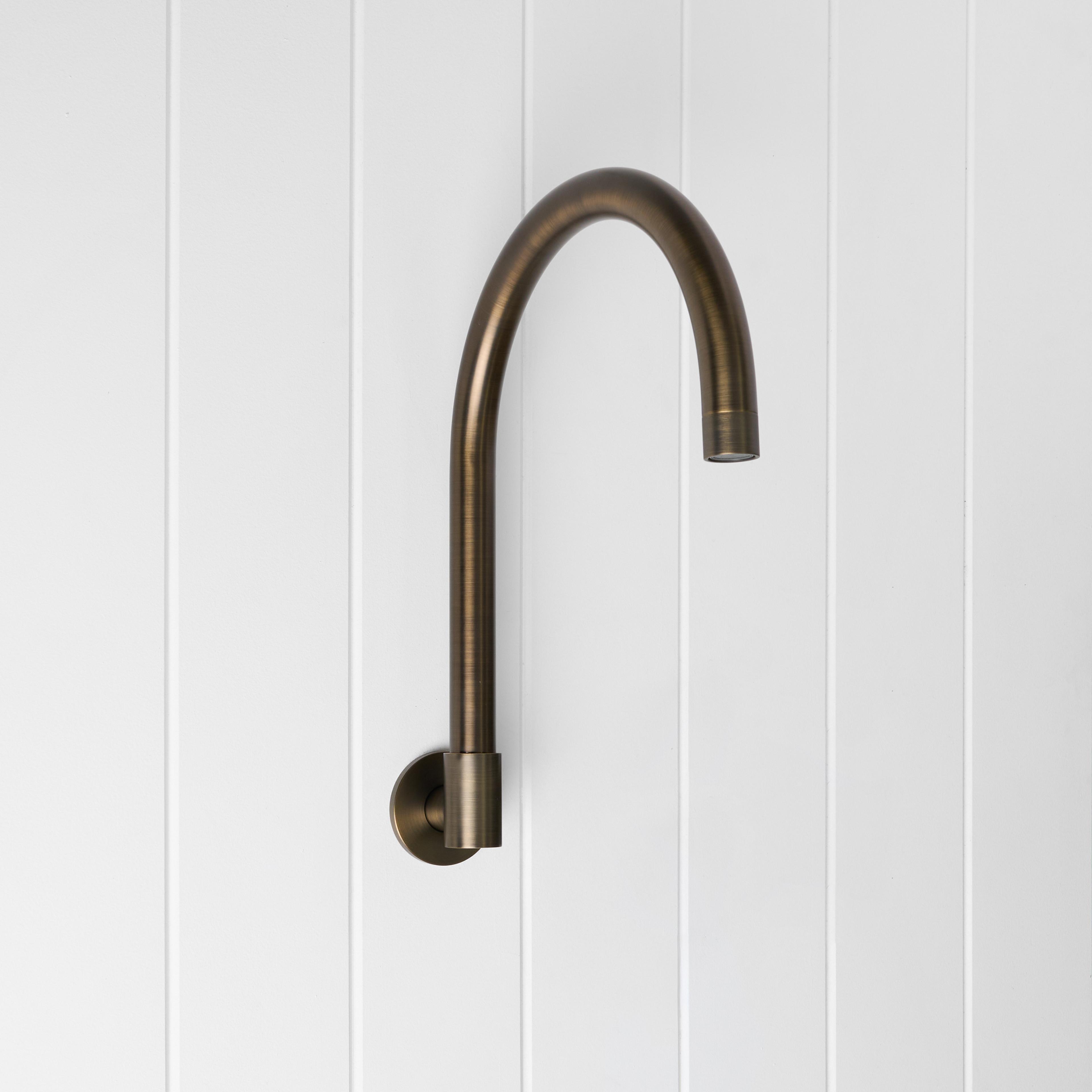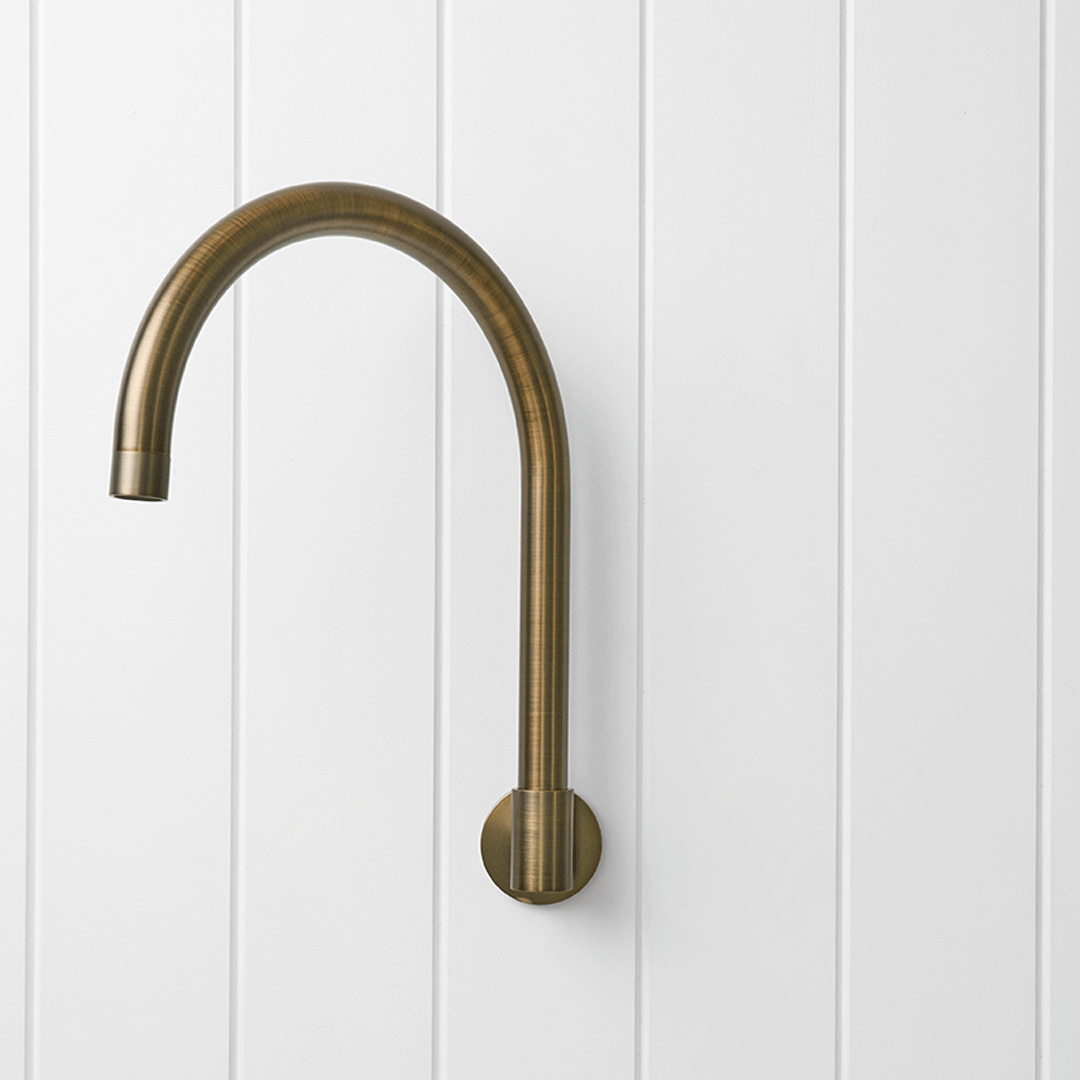 The Sydney Swivel Spout Antique Brass combines a soft gooseneck profile with practical flexibility, offering a refined solution for compact spaces.
