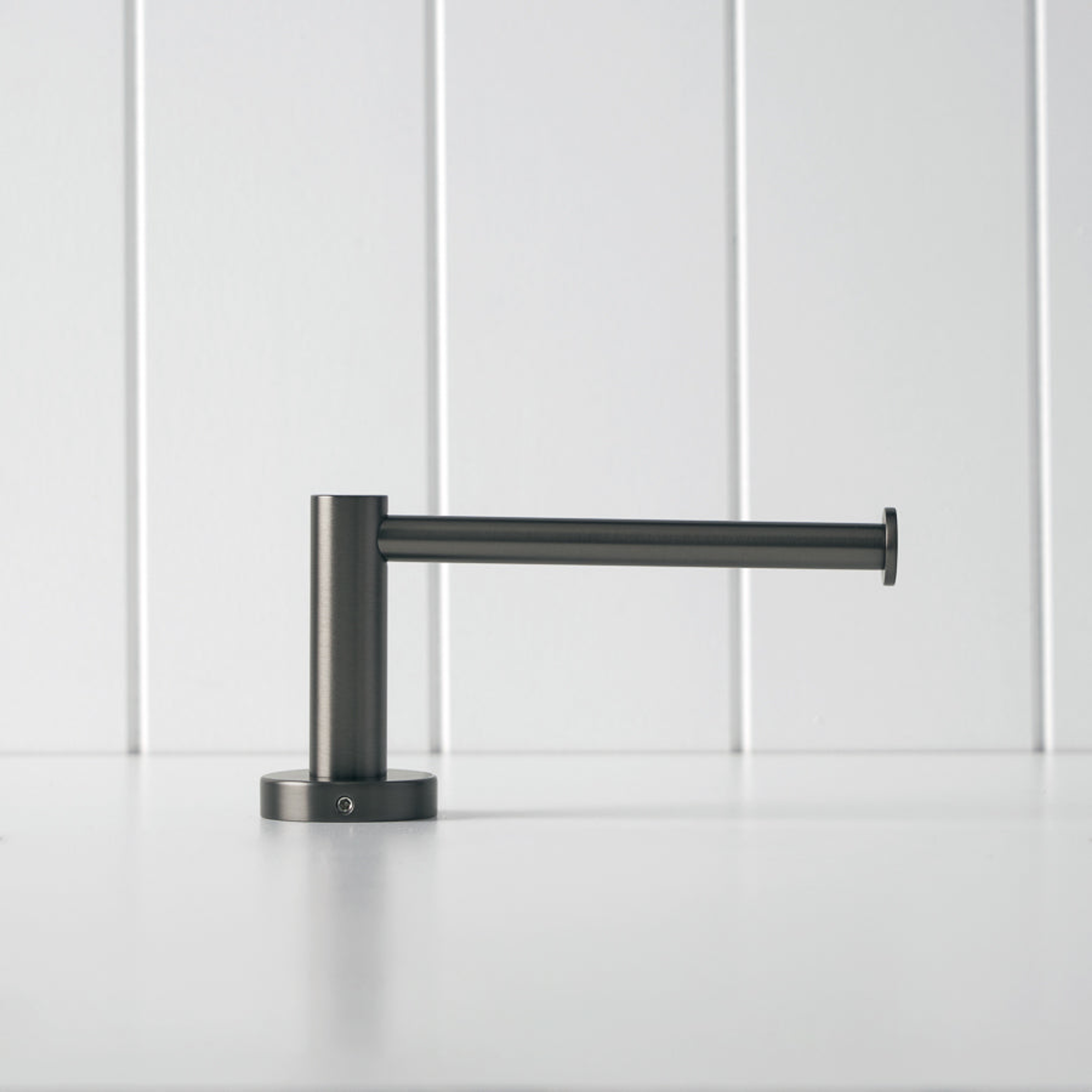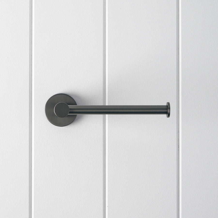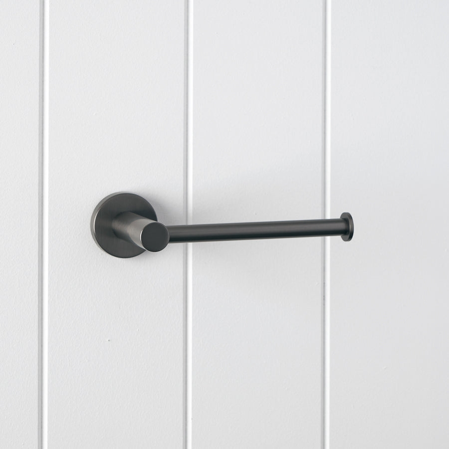 The Sydney Toilet Roll Holder in Gunmetal suits renovators who like a darker metal finish without going full black. The stainless steel body feels solid in hand, and the open arm makes roll changes fast. It is a practical toilet roll holder that helps keep the toilet area organised.