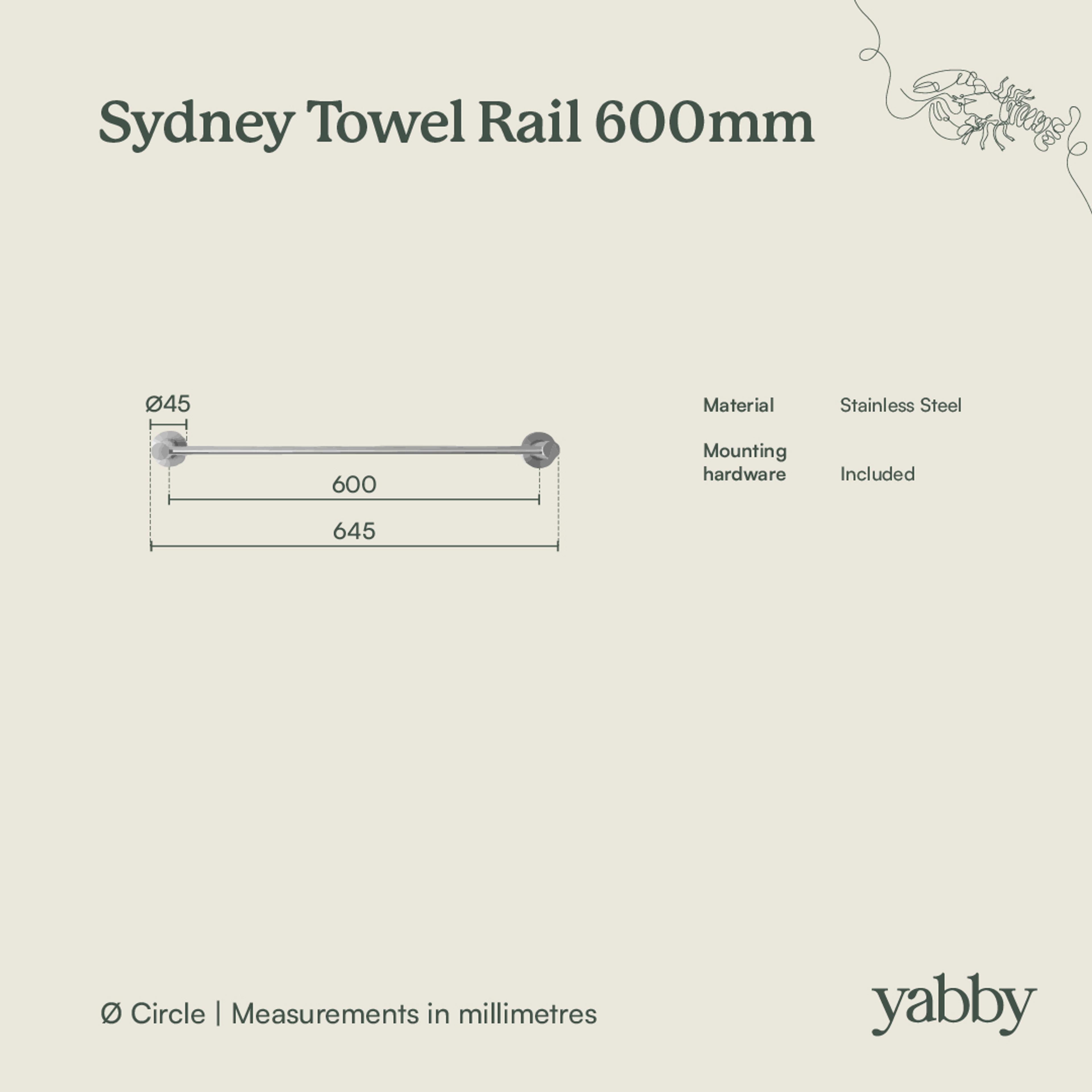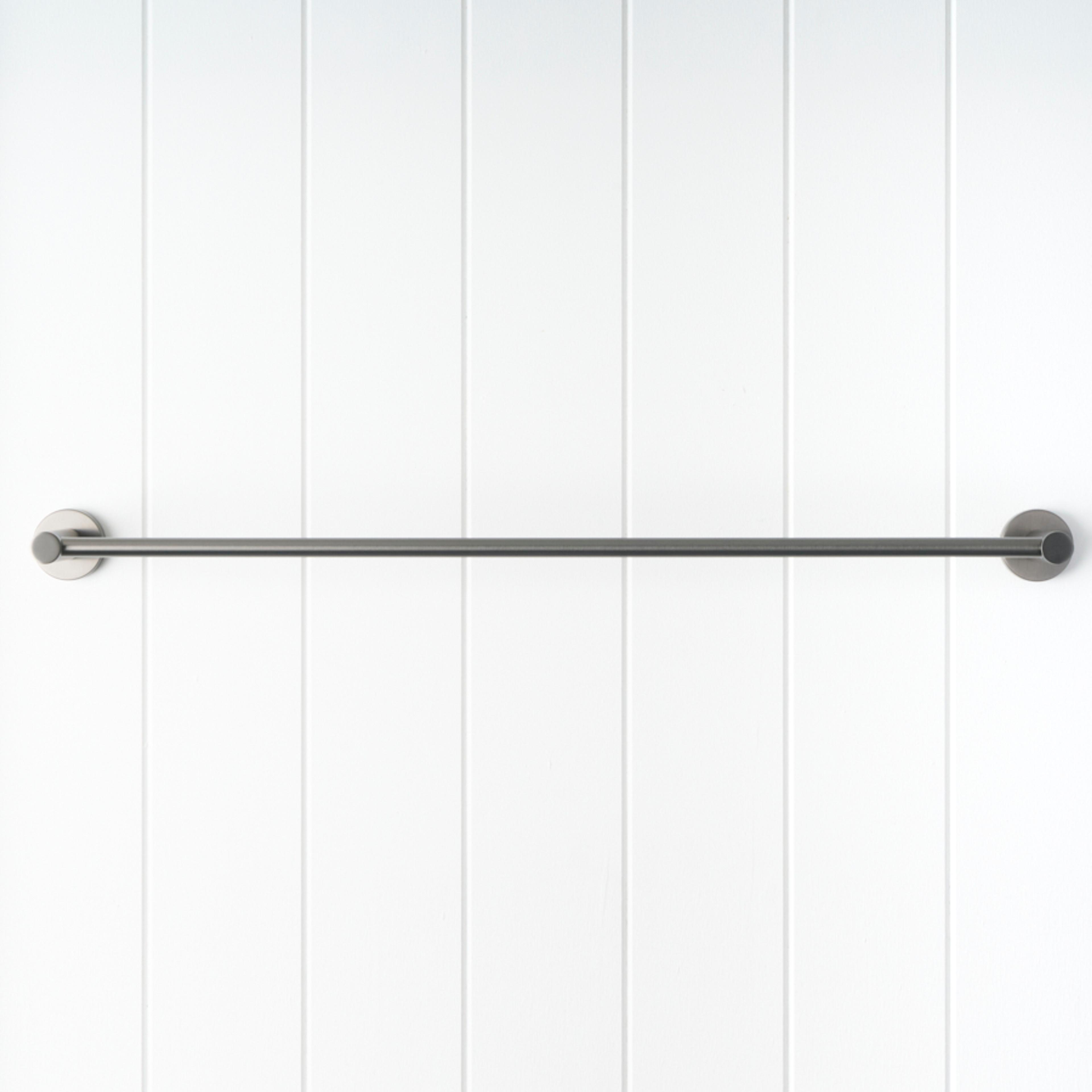 The Sydney Towel Rail in Gunmetal (600mm) is ideal for renovators wanting a darker metal tone without going fully black. The stainless steel body feels solid, and the 600mm length provides generous towel space. It is a durable option for organised, modern bathrooms.