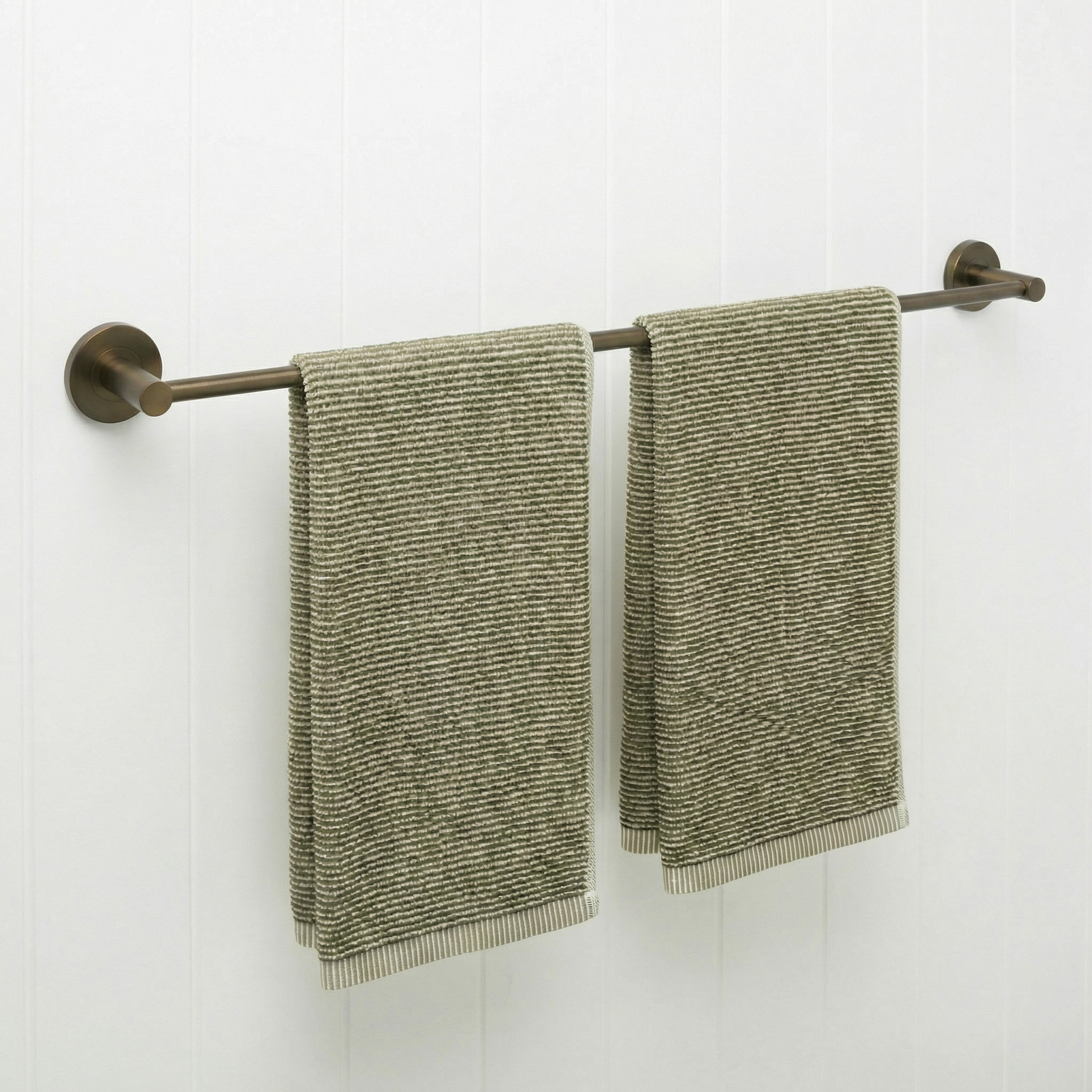 The Sydney Towel Rail in Antique Brass (750mm) is ideal for families who need extra hanging room. The longer stainless steel bar keeps towels spaced so they dry faster and stay fresher between washes. Its durable Antique Brass finish is easy to live with and adds gentle warmth to the room.
