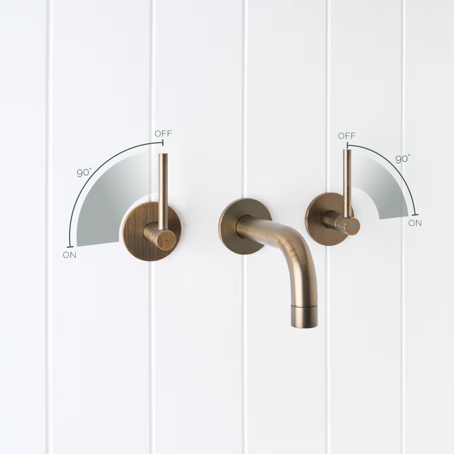 The Sydney Wall Spout and Double Handle Taps in Antique Brass offer a clean, contemporary look for bathrooms and powder rooms that favour simplicity and modern design. This set includes a streamlined wall-mounted spout paired with two separate handles — one for hot and one for cold — giving you precise and intuitive control over your water temperature.