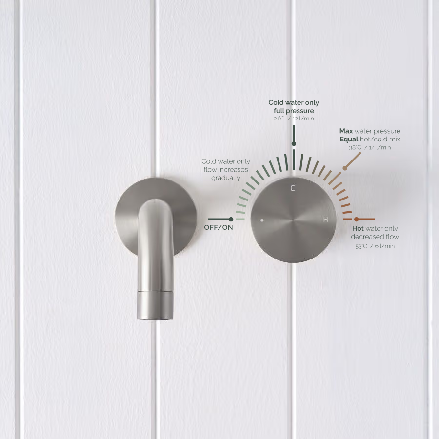 The Sydney Wall Spout and Progressive Mixer in Stainless Steel is a practical all rounder for family bathrooms and ensuites. Stainless steel is durable and easy to clean, and the progressive mixer makes it simple to set a preferred shower temperature. With fewer handles, this wall spout and mixer also reduces cleaning time.