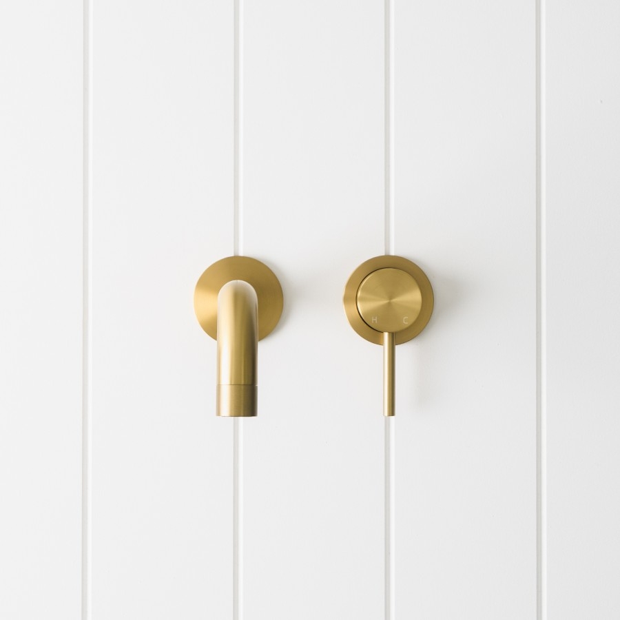 Sydney Wall Spout + Wall Mixer Brushed Brass