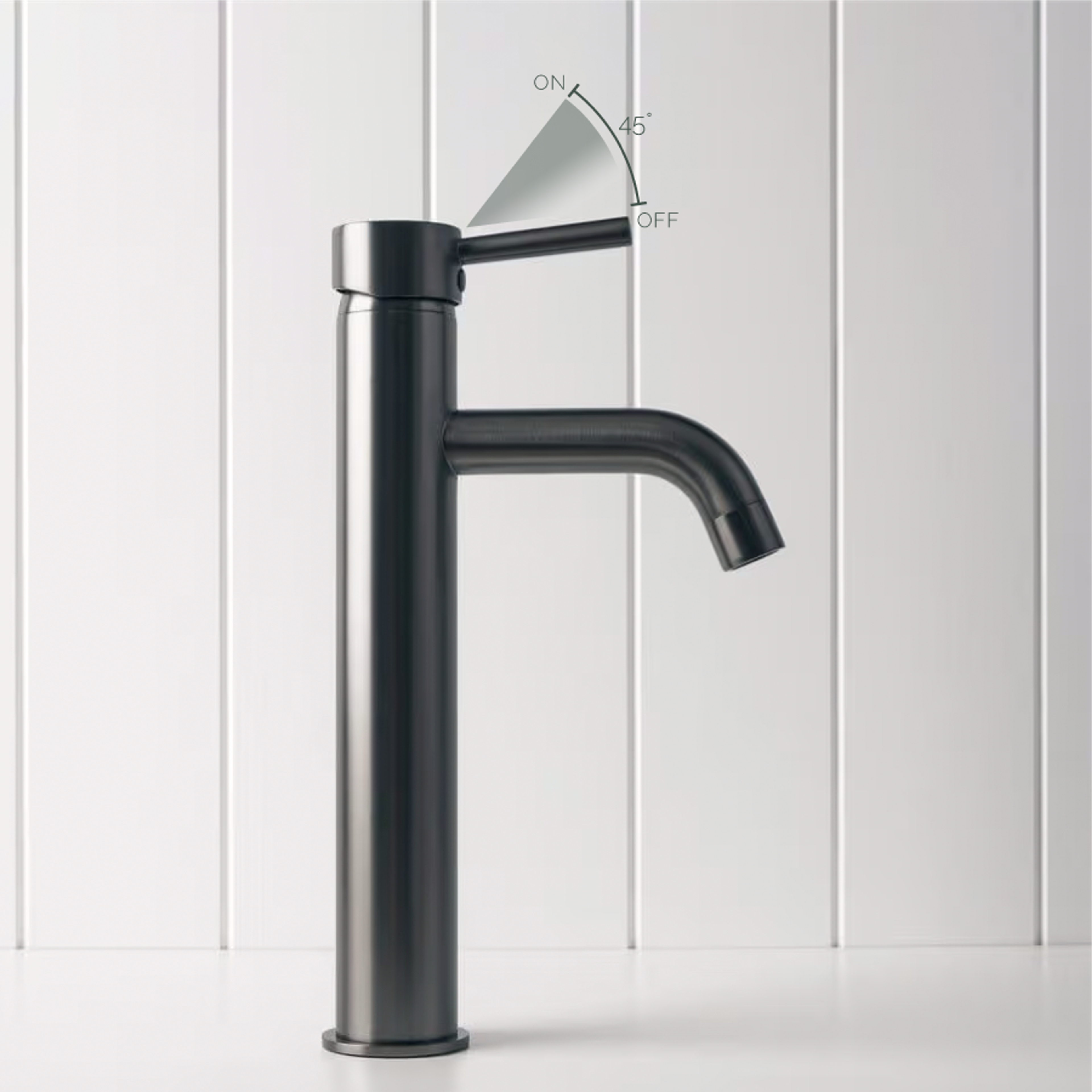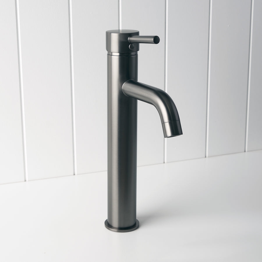 The Tall Basin Mixer in Gunmetal is ideal if you like darker tapware but still need everyday practicality. The tall spout gives plenty of room above above counter basins, and the Gunmetal finish is designed for regular use. It is a hardworking tall basin mixer that helps keep splashes in the bowl, not on the bench.