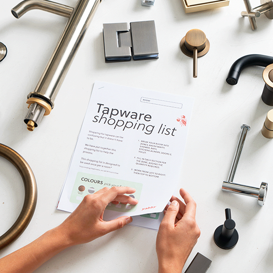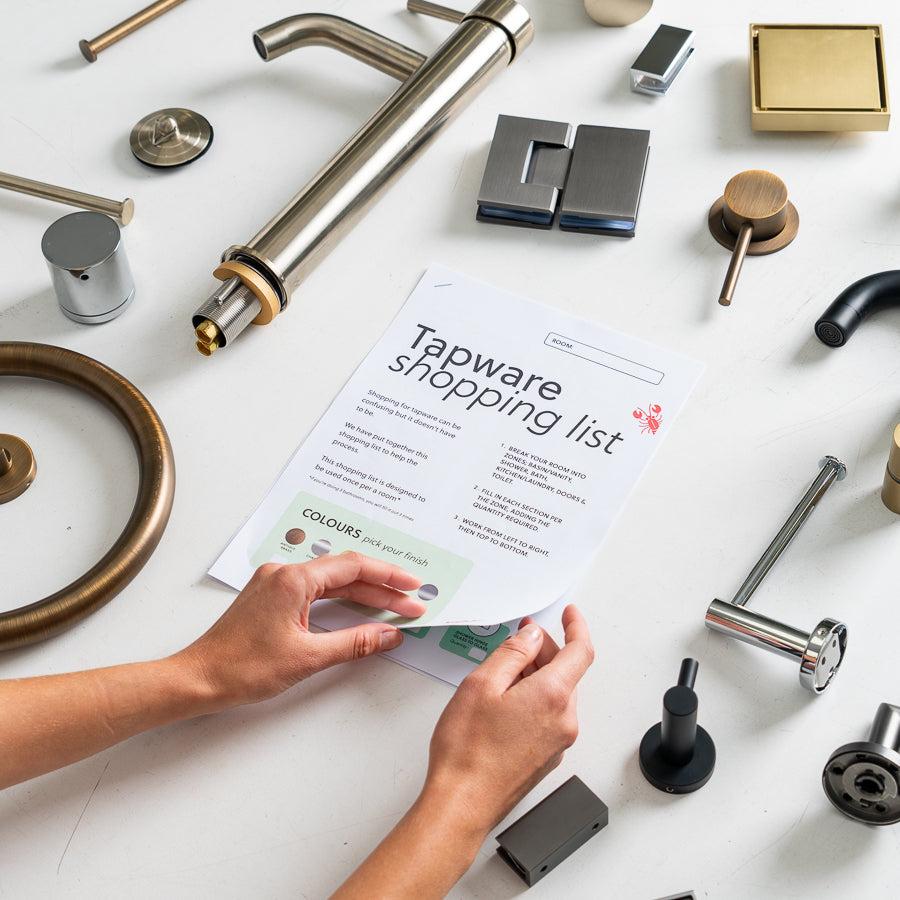 Shopping for tapware can be confusing but it doesn't have to be. We have put together this shopping list to help with the process. This shopping list is designed to be used once per room*.